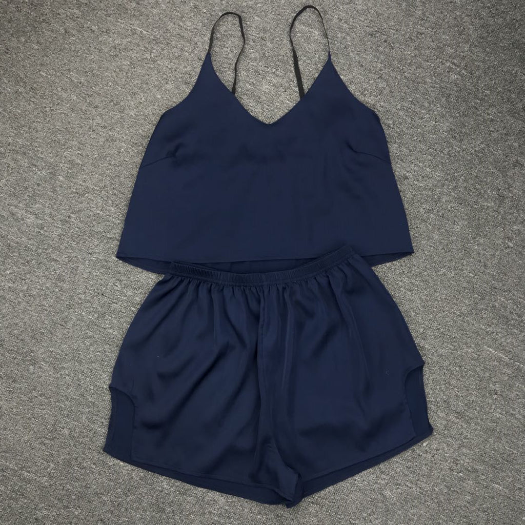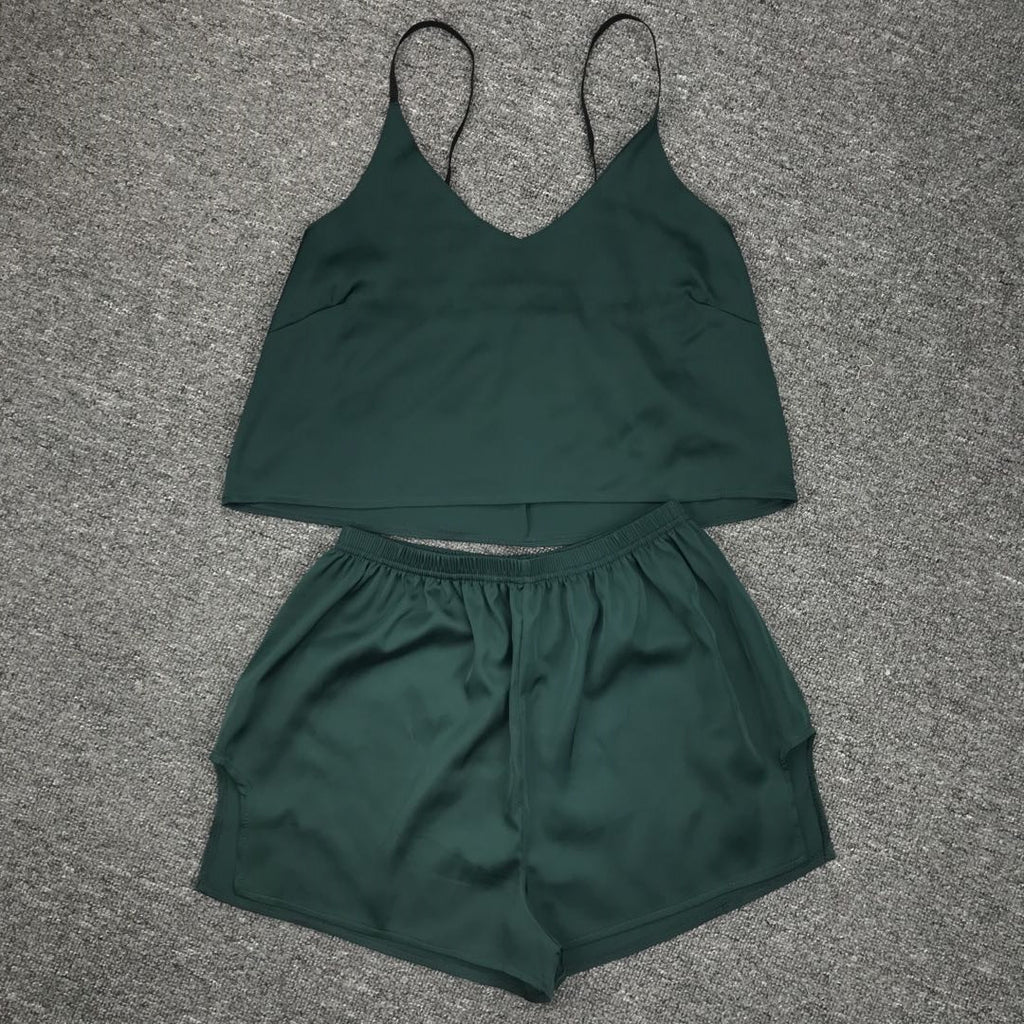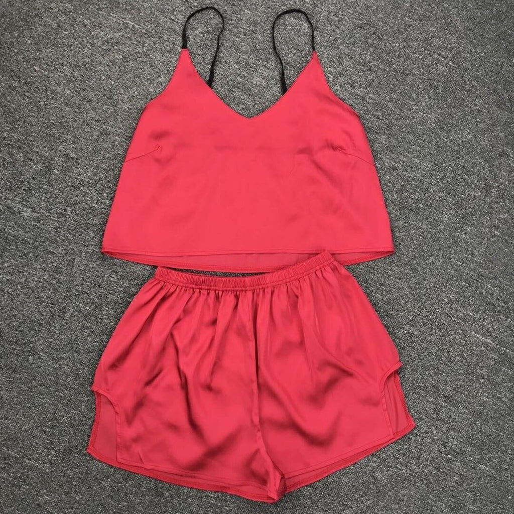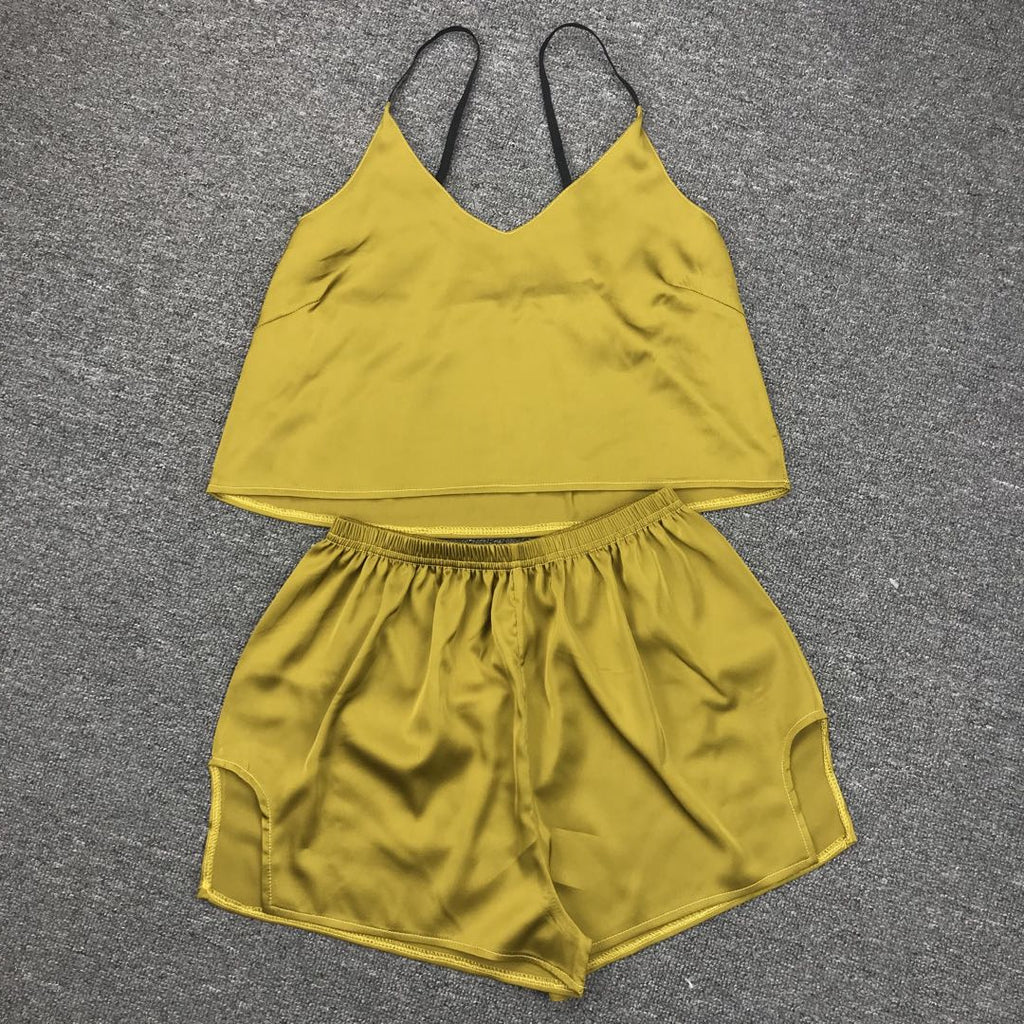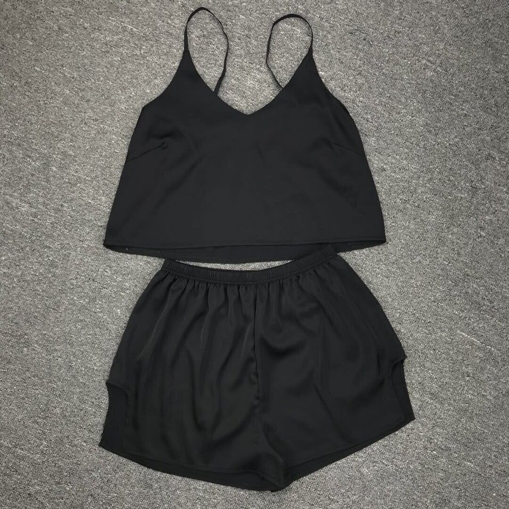 كن لطيفًا ومريحًا أثناء الاسترخاء في المنزل في أعلى دبابة للسيدات والسروال. إنه يتميز بأشرطة السباغيتي وزوج من شورتات الخصر العالية لراحتك.
