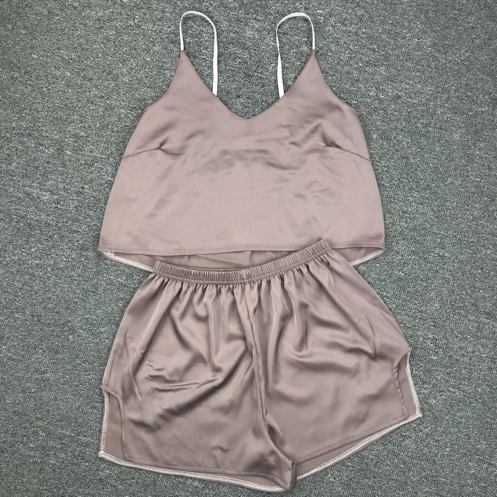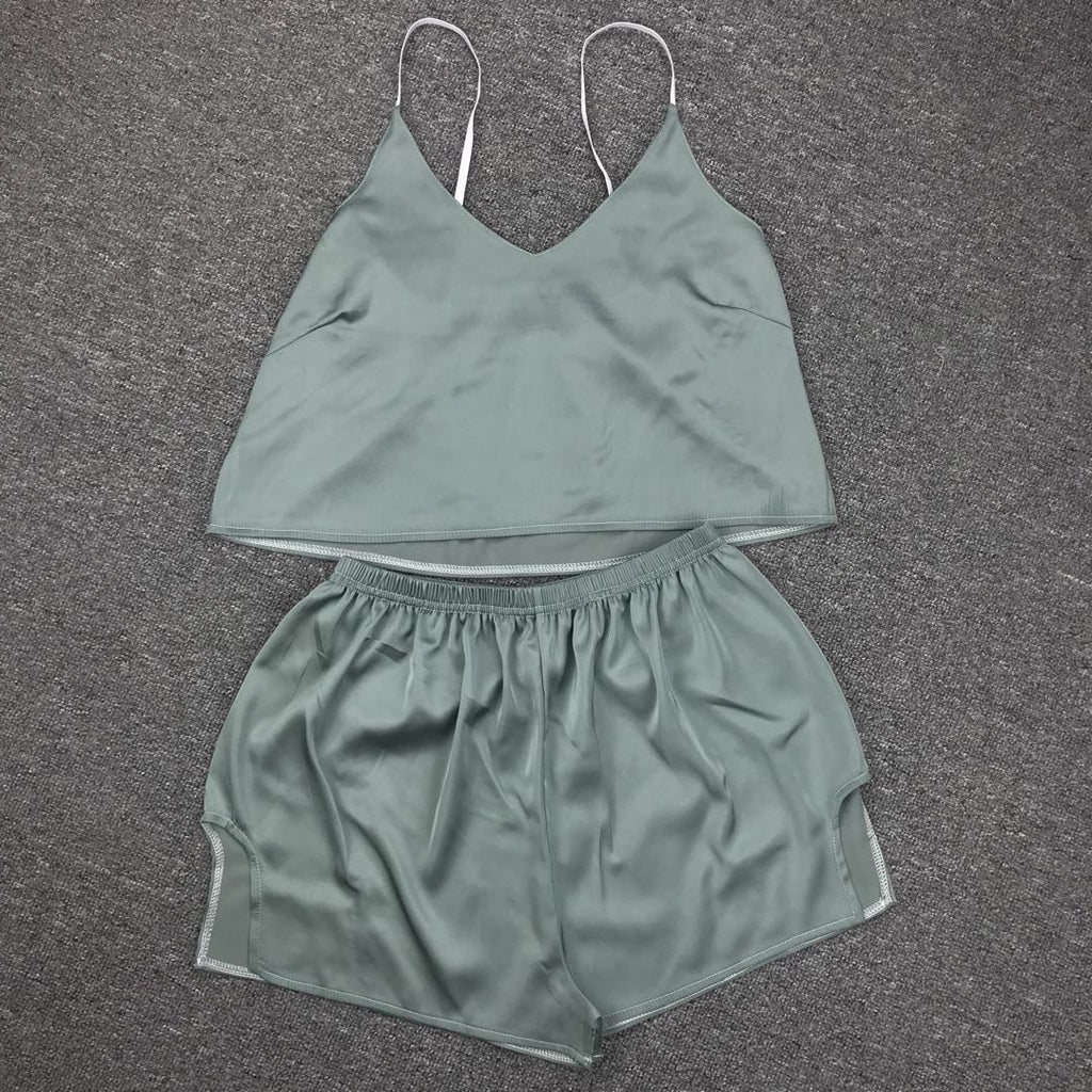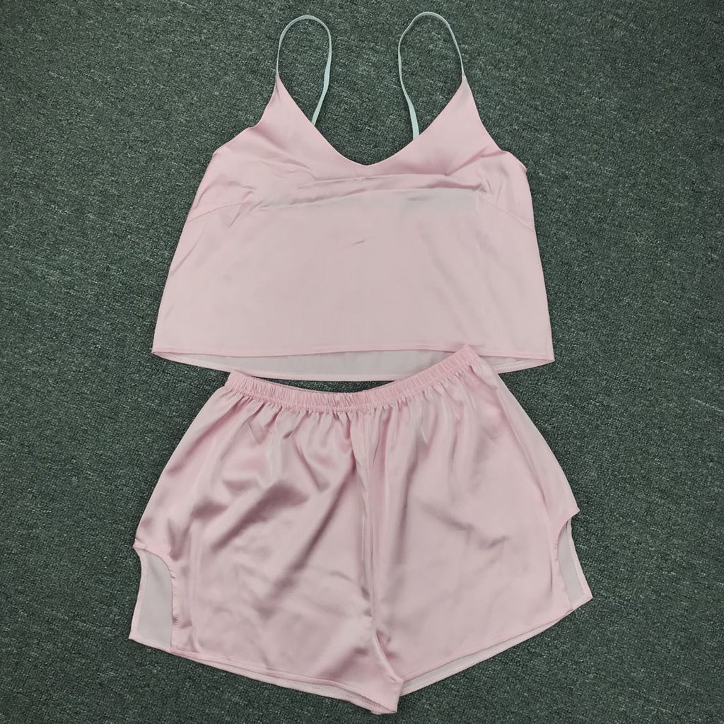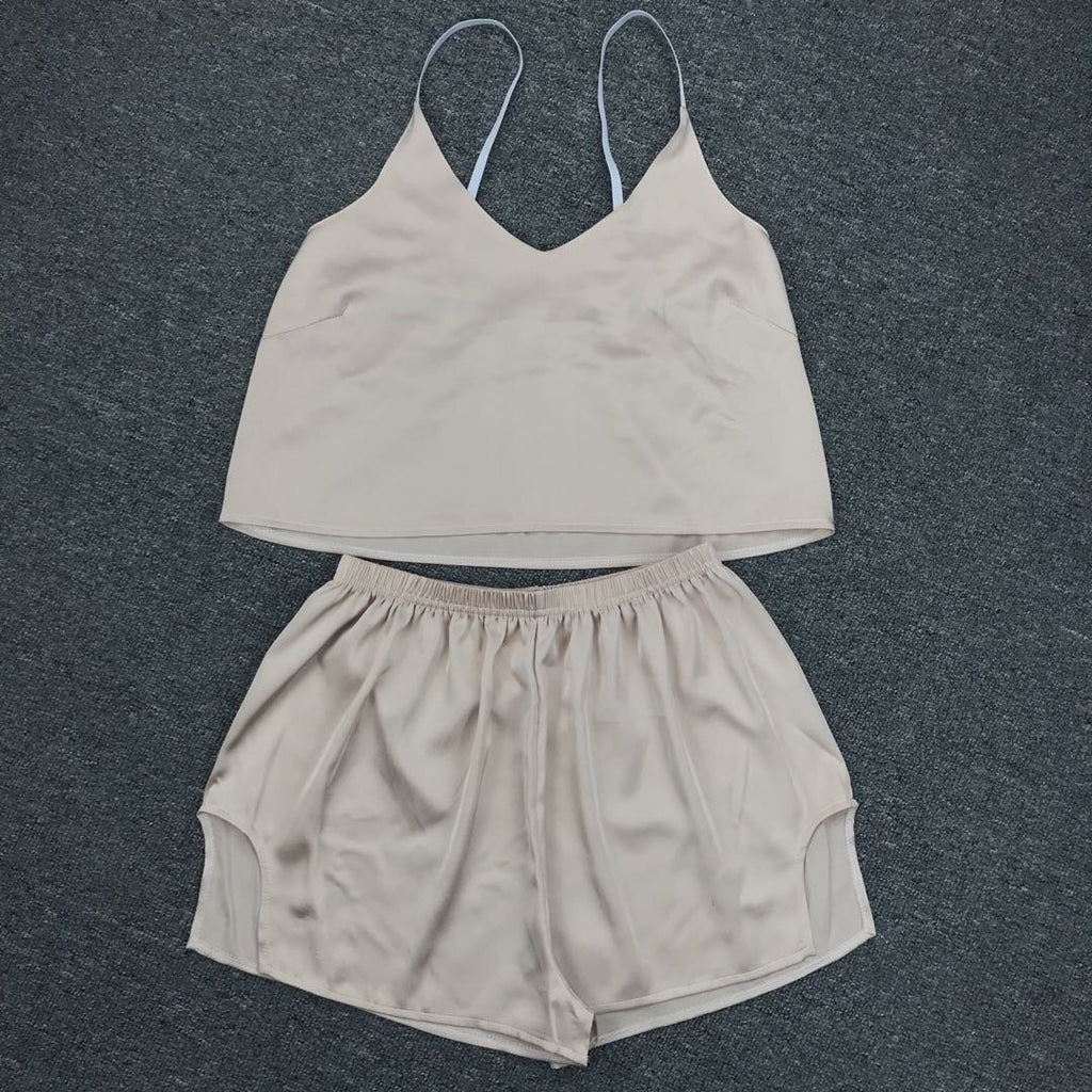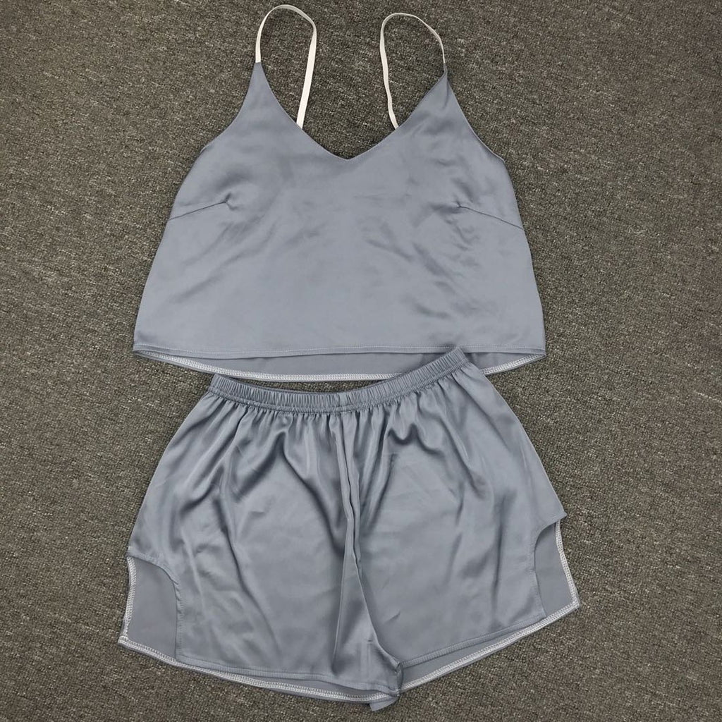 كن لطيفًا ومريحًا أثناء الاسترخاء في المنزل في أعلى دبابة للسيدات والسروال. إنه يتميز بأشرطة السباغيتي وزوج من شورتات الخصر العالية لراحتك.