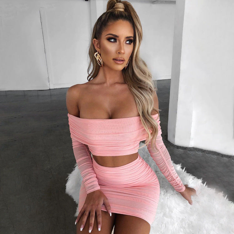 تبدو لطيفًا ومغريًا في مجموعة محصول من قطعتين ومجموعة تنورة قلم رصاص. تتميز هذه المجموعة قبالة أكمام الكتف وخط العنق الذي يجلس مع الأكمام.