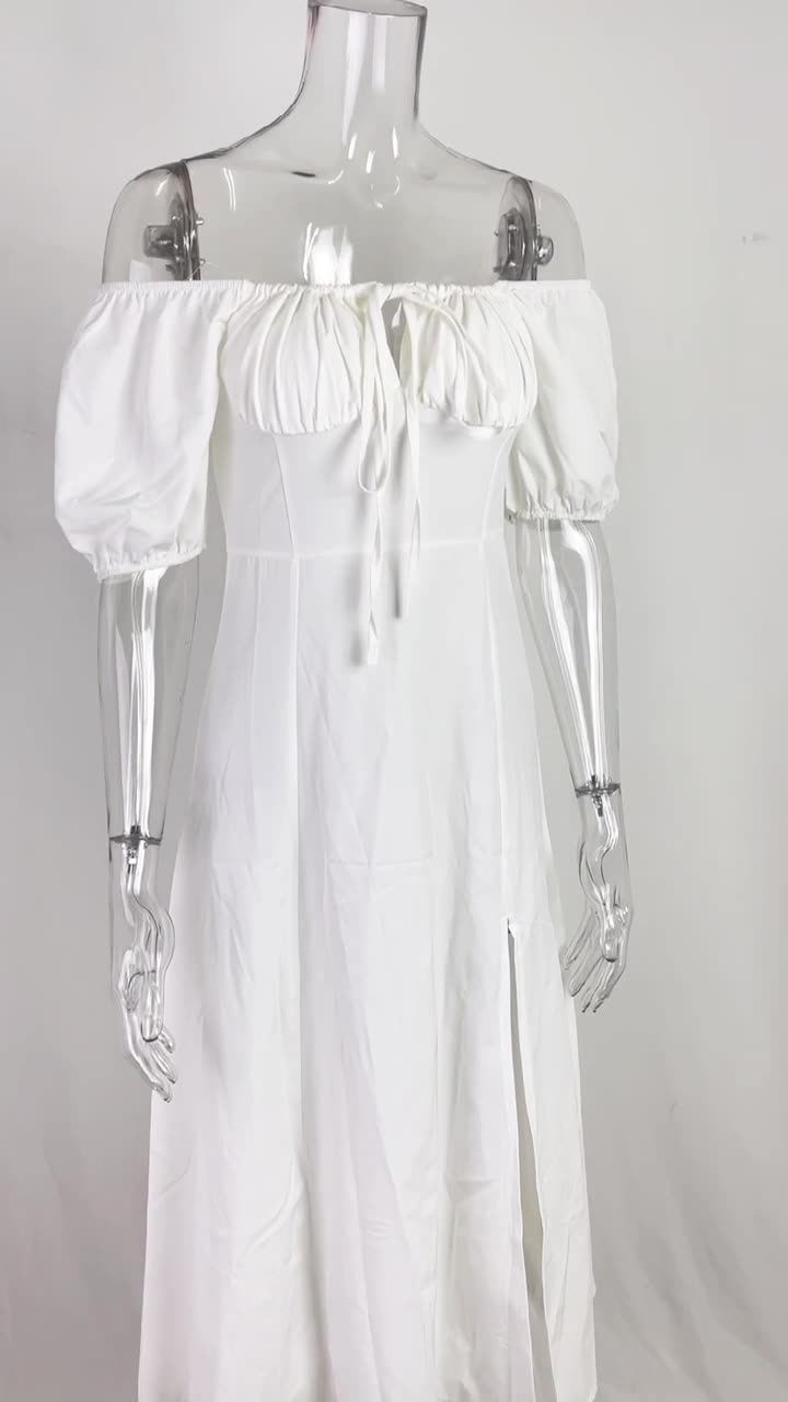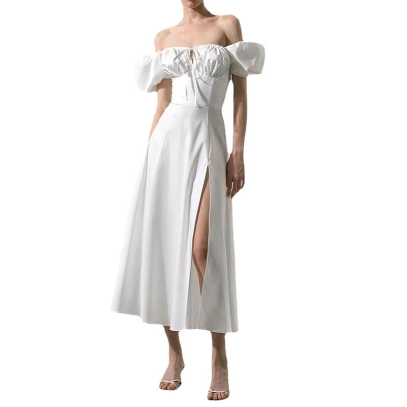 أدلي ببيان في أي حدث يرتدي الأكمام المنتفخة من فستان الرسن الكتف. يتميز هذا الفستان MIDI بشق يعمل على الفخذ لمنحه ميزة مغرية.
