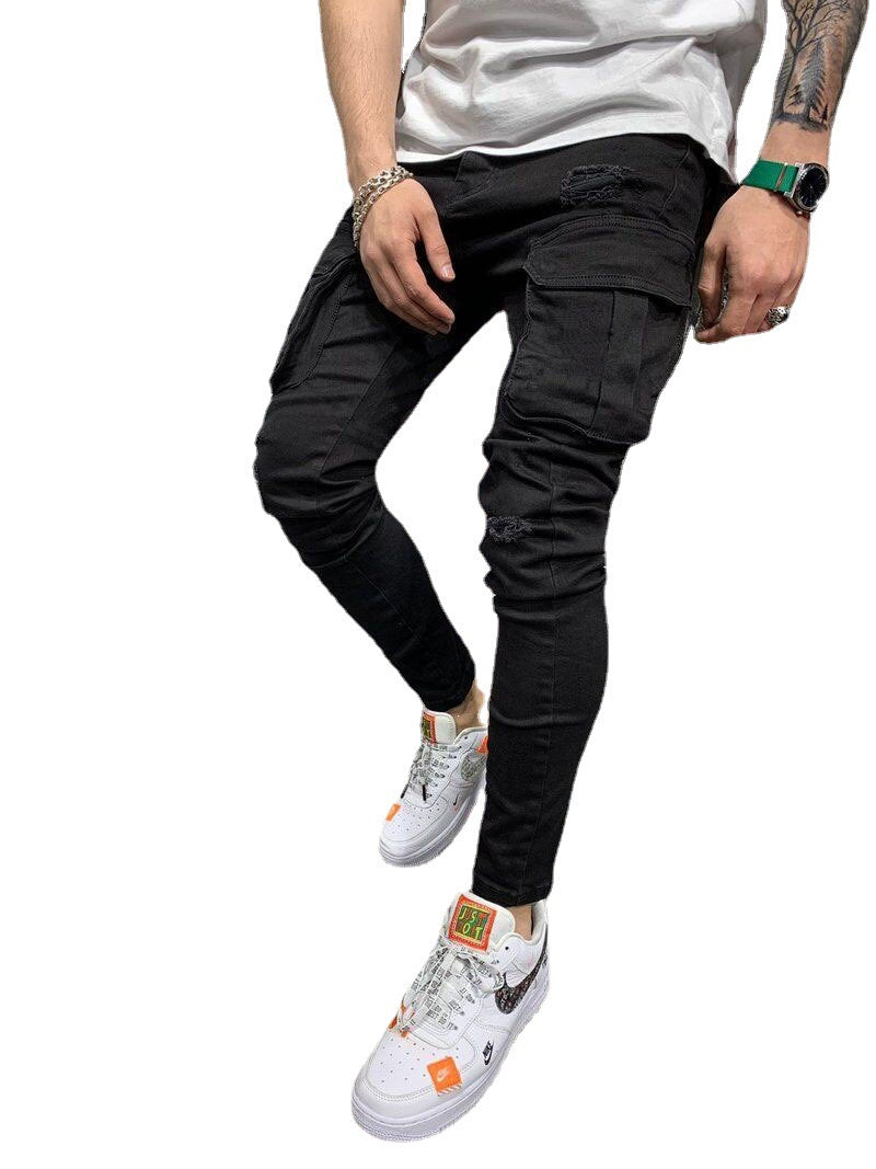السراويل النحيفة الداكنة للرجال مع جيوب على طراز البضائع