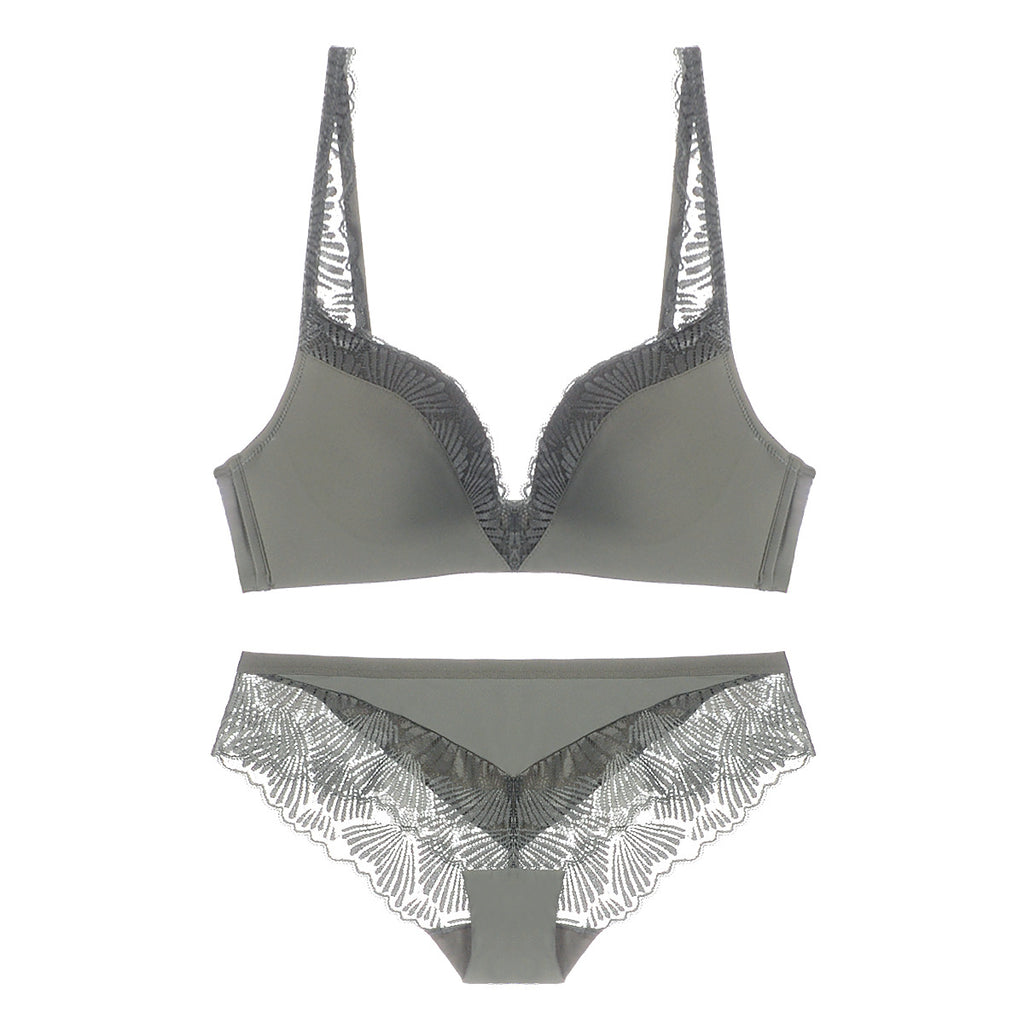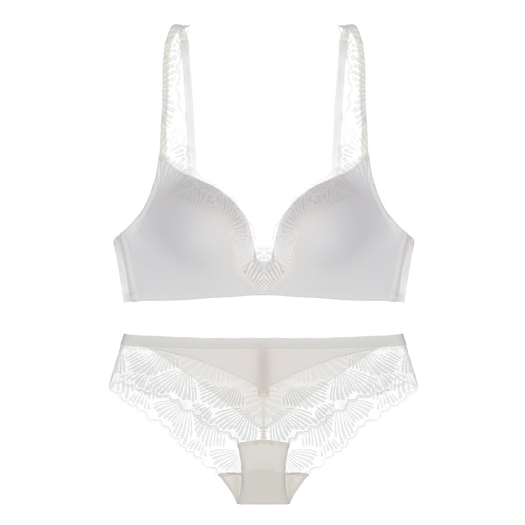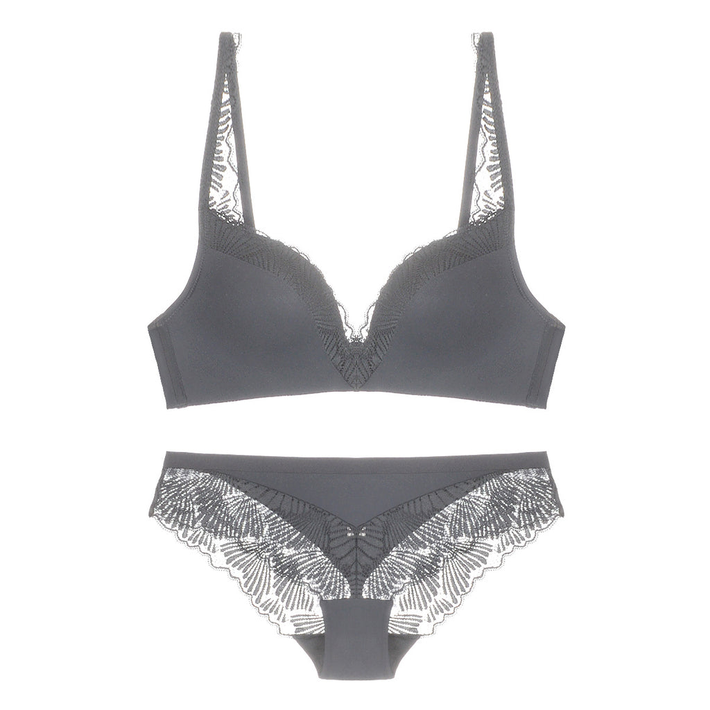 Los tirantes finos de encaje del sujetador combinan con los cortes de encaje de las bragas del conjunto de sujetador y bragas con ribete de encaje Smooth Cup para una apariencia aerodinámica y discreta.