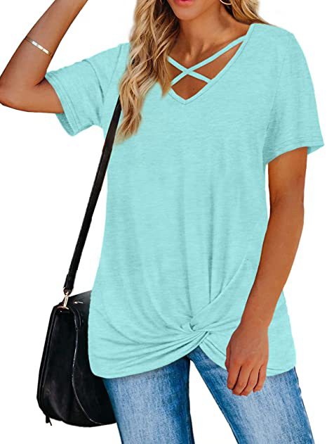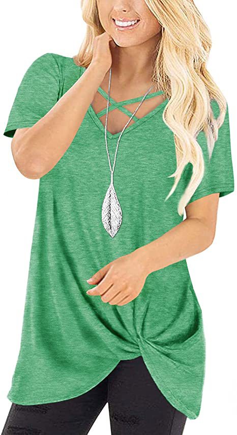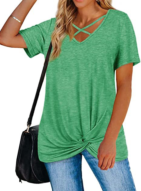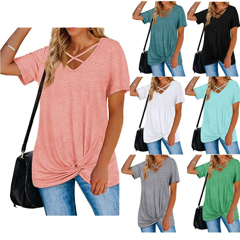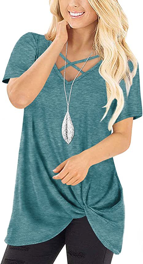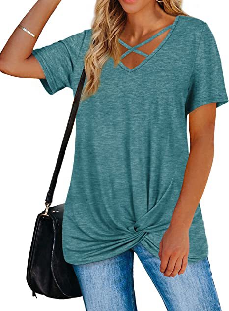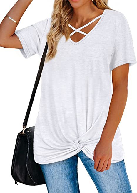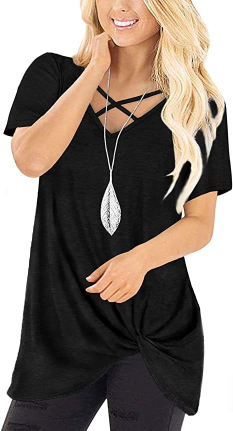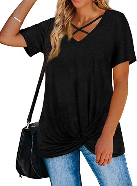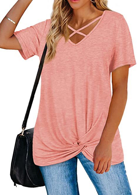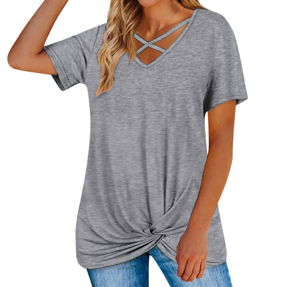 Con el nudo de corbata en la parte delantera y el pecho con tiras, esta camiseta holgada con nudo de corbata para mujer de tiras es siempre linda y moderna. Está hecho de algodón cómodo.