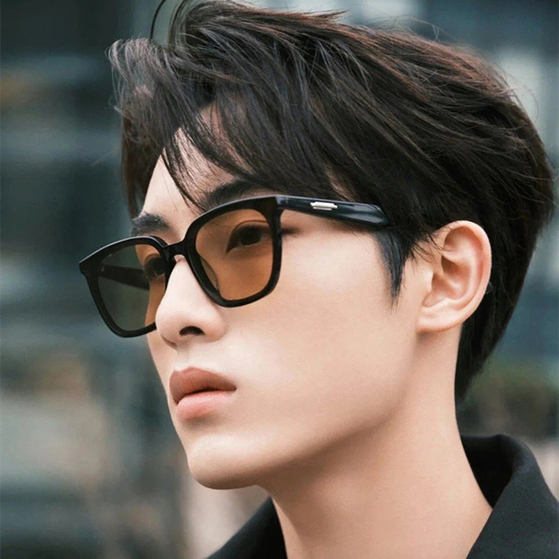 Las anteojos de sol informales retro con borde grueso y protección UV protegen sus ojos de los rayos del sol y se ven geniales mientras lo hacen con su forma clásica de borde completo con puntos en las esquinas.