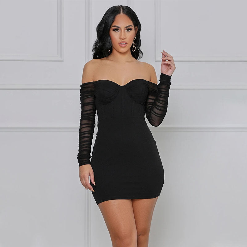 Disfruta de un vestido clásico de cóctel Mira tu próxima fiesta con el mini vestido inspirado en el corsé de las mujeres con mangas transparentes que presenta un escote de novia coquetamente y un dobladillo corto.
