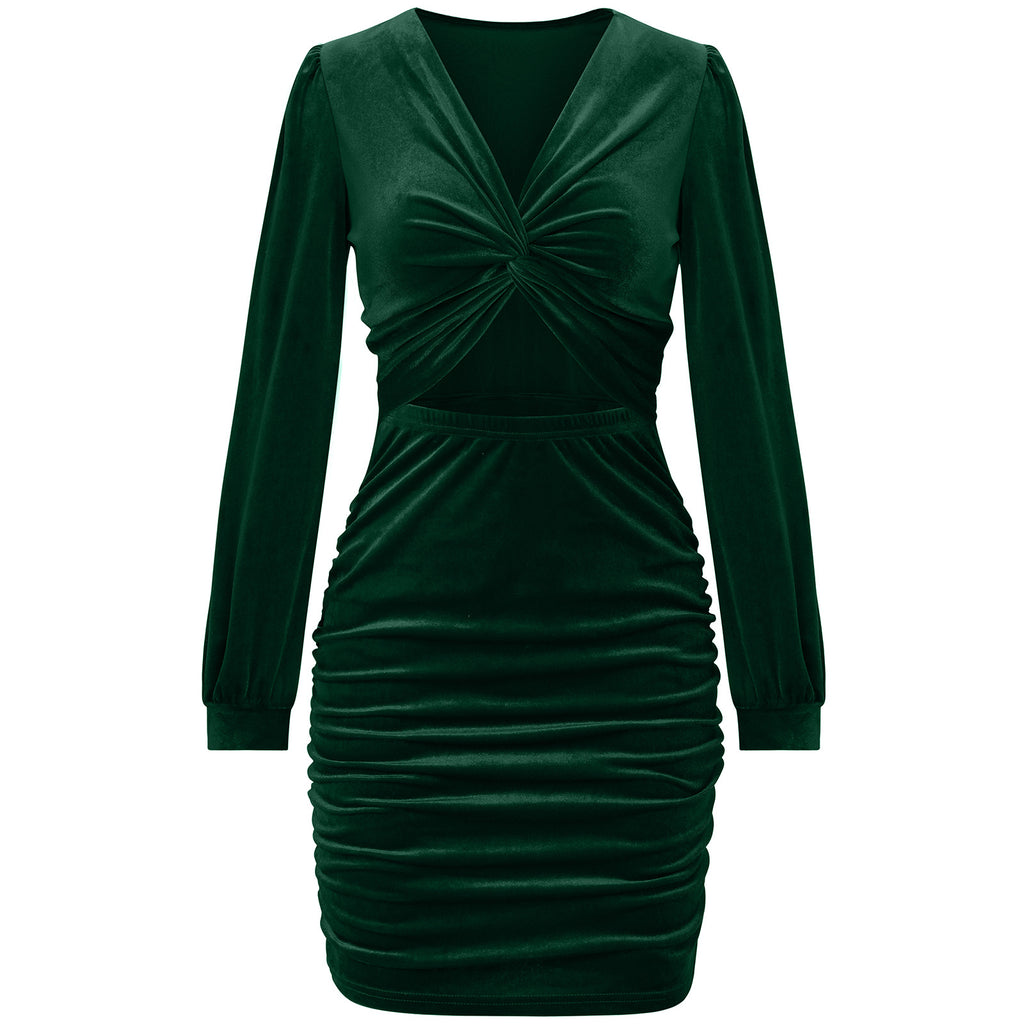 Robe el espectáculo cuando salga usando la tapa del cultivo aterciopelado de las mujeres y el conjunto de minifaldas con un cuello en V bajo, un recorte de abdomen y mangas largas.