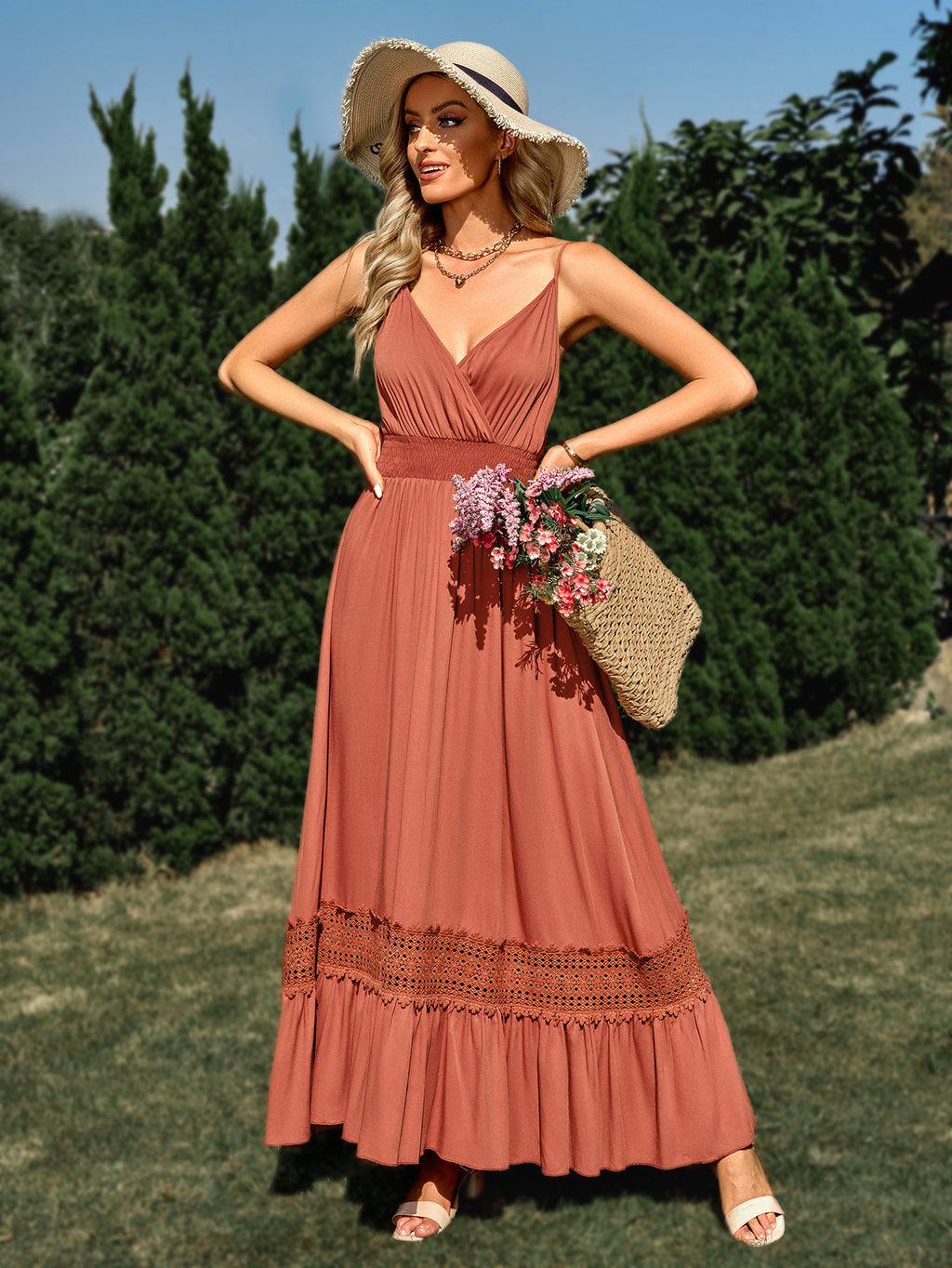Vestido de maxi sin mangas para mujeres con dobladillo con volantes