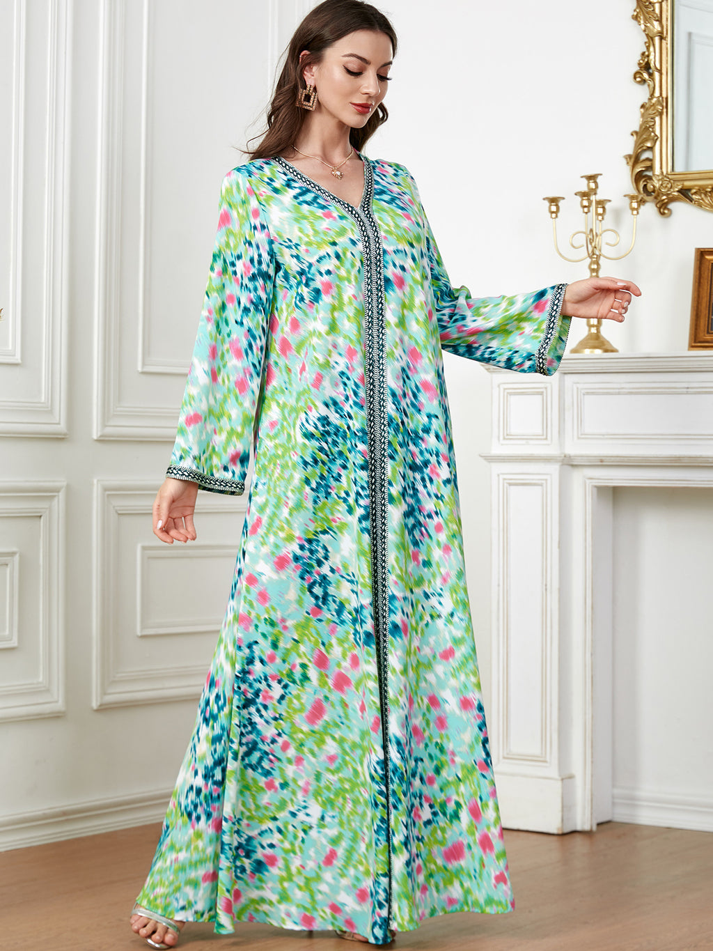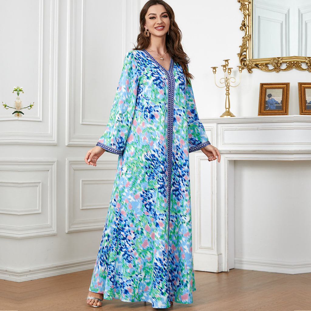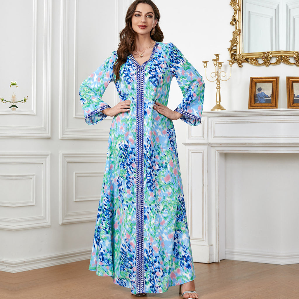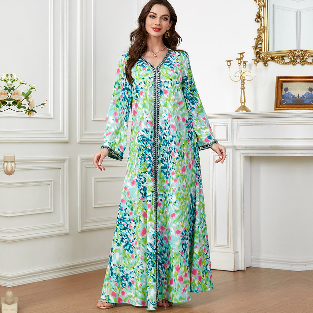 Women's Long Sleeve Tie-Dye Style Maxi Dress