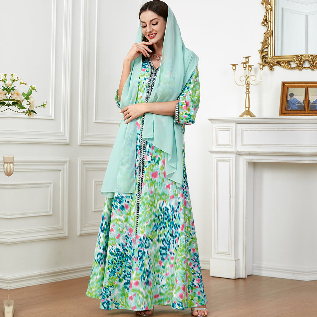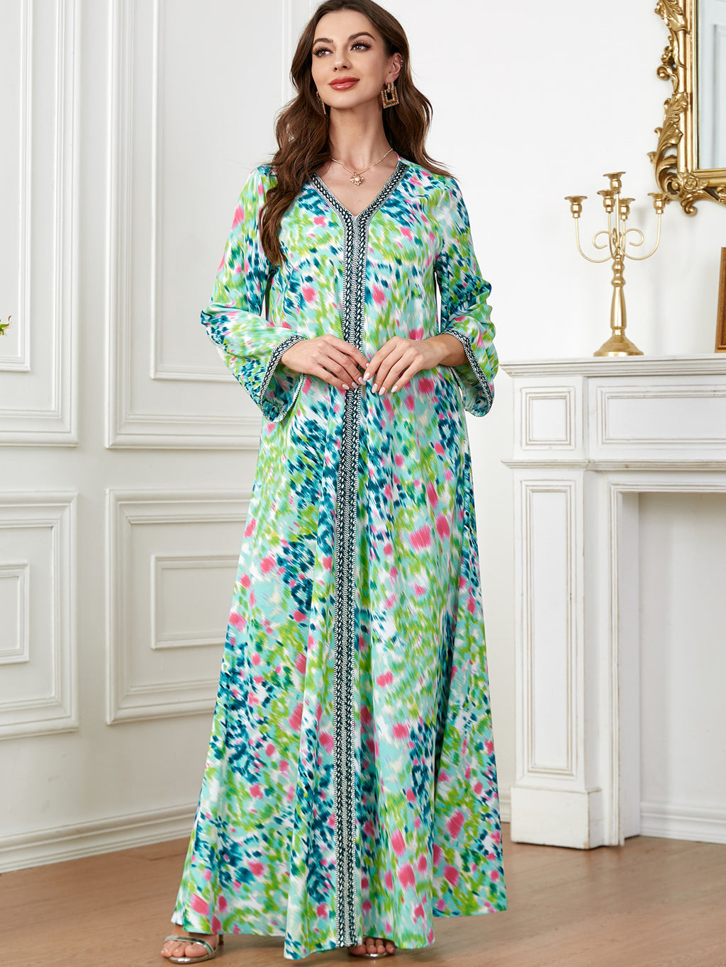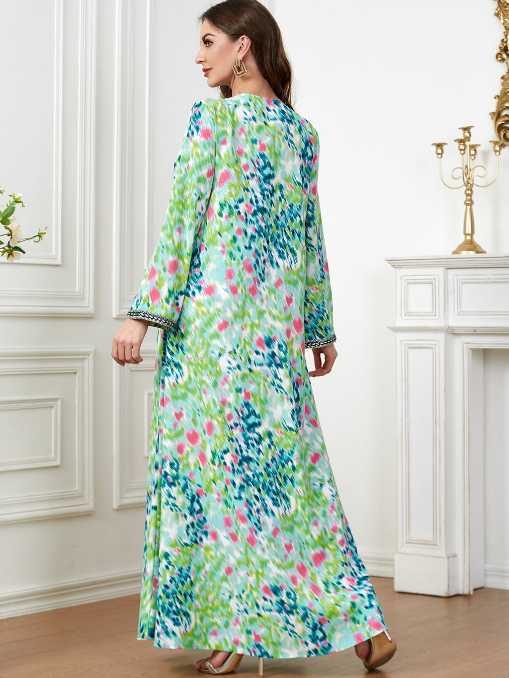 Women's Long Sleeve Tie-Dye Style Maxi Dress