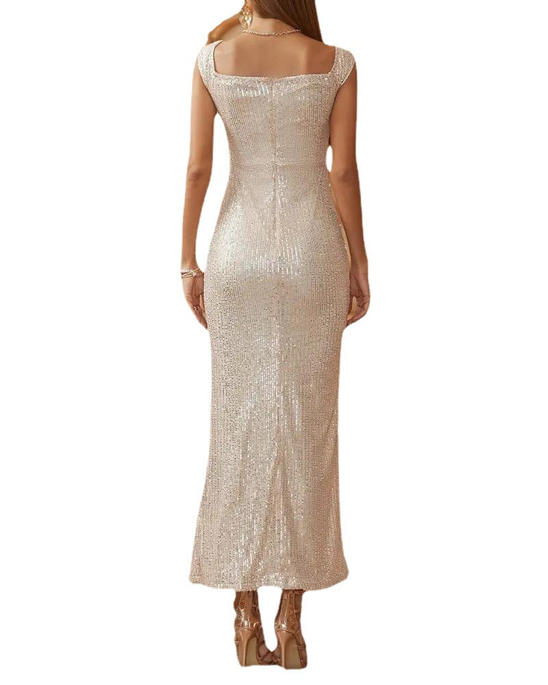 Forme ajusté Robe maxi à froufrous avec fente de cuisse