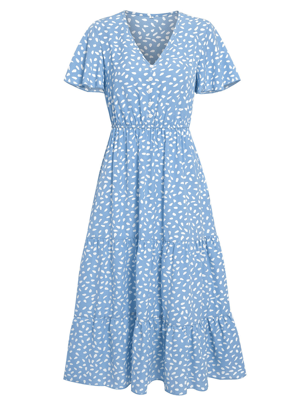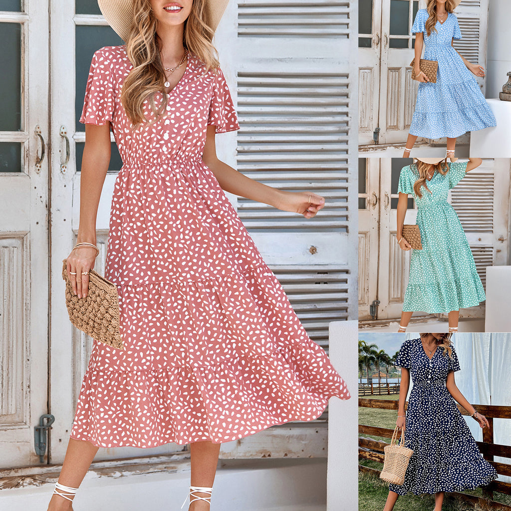 Montrez votre esprit gratuit cet été en portant la robe MIDI A-Line à manches courtes pour femmes. Cette robe à motifs est disponible dans les options de couleur rose, bleu, marin et noir.