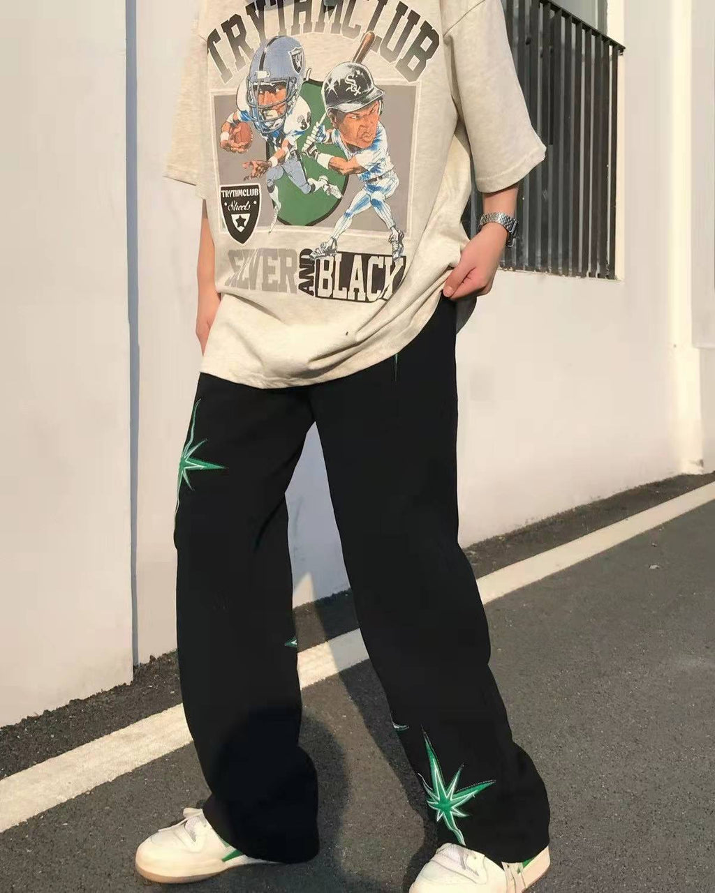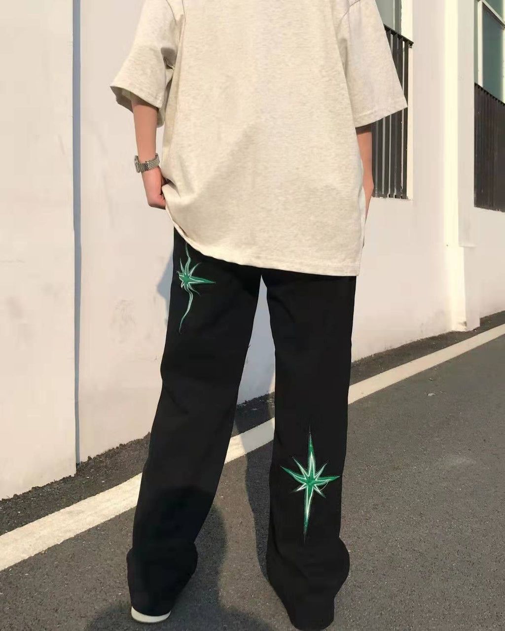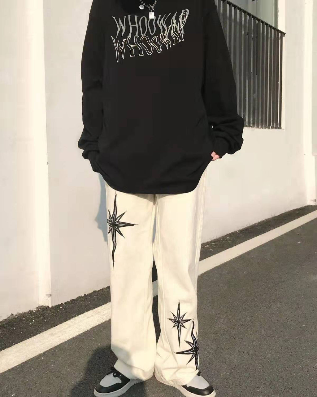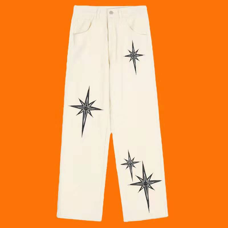 Stand out wherever you go in the Women’s High Waist Comfy Pants with Black Star Details. The pants have a neutral hue that allows you to pair them with any color of top.
