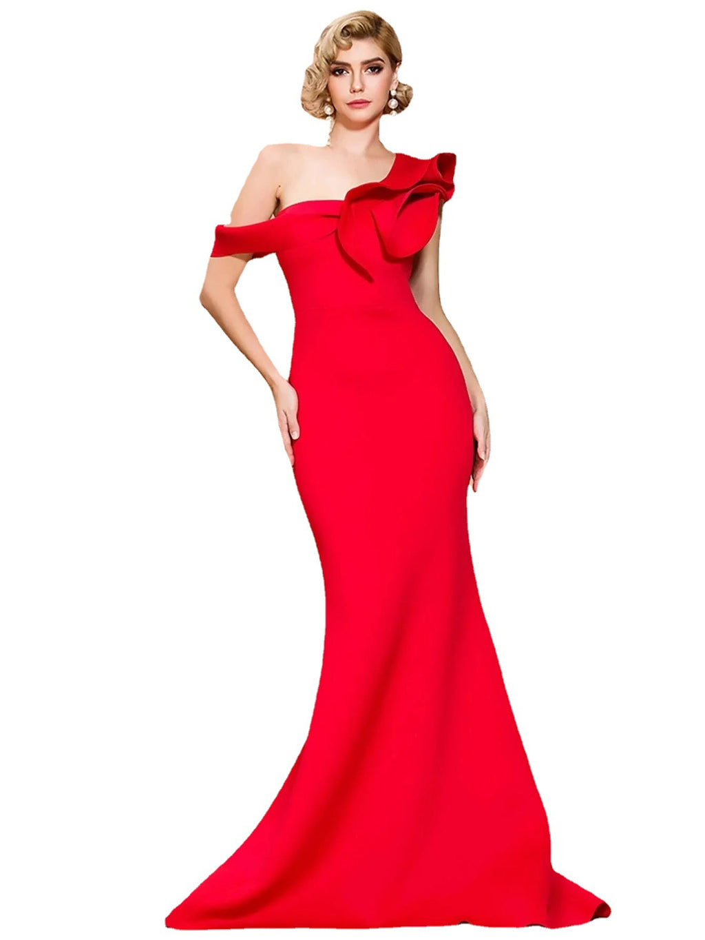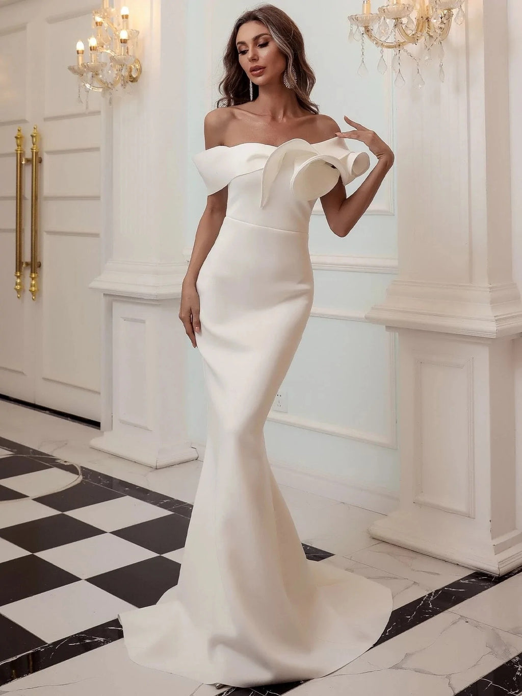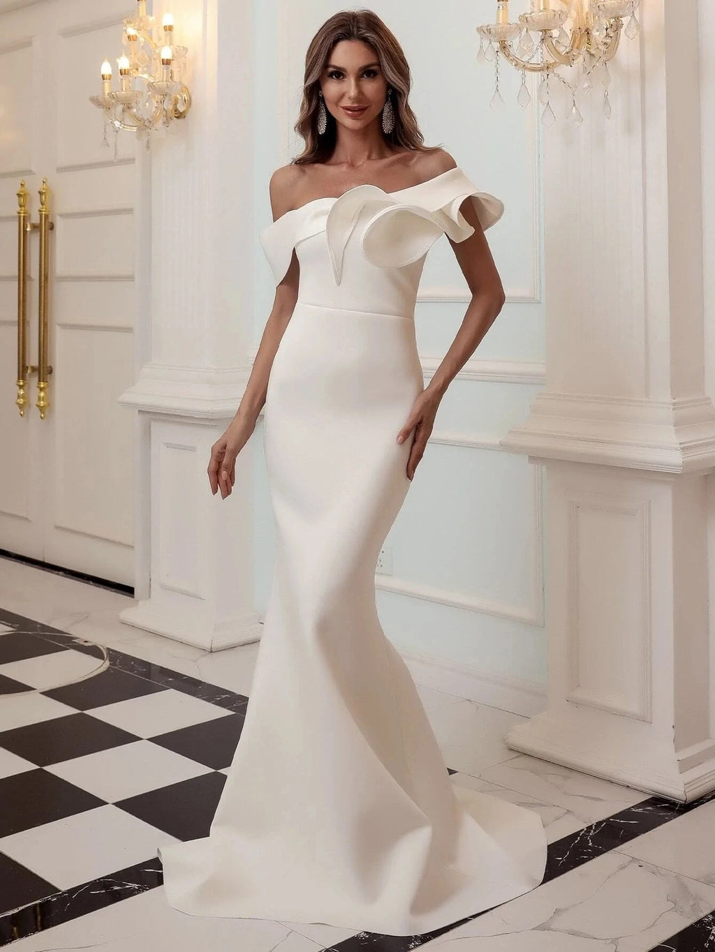 नाटकीय नेकलाइन फ्रिली फॉर्म फिटिंग बॉल गाउन