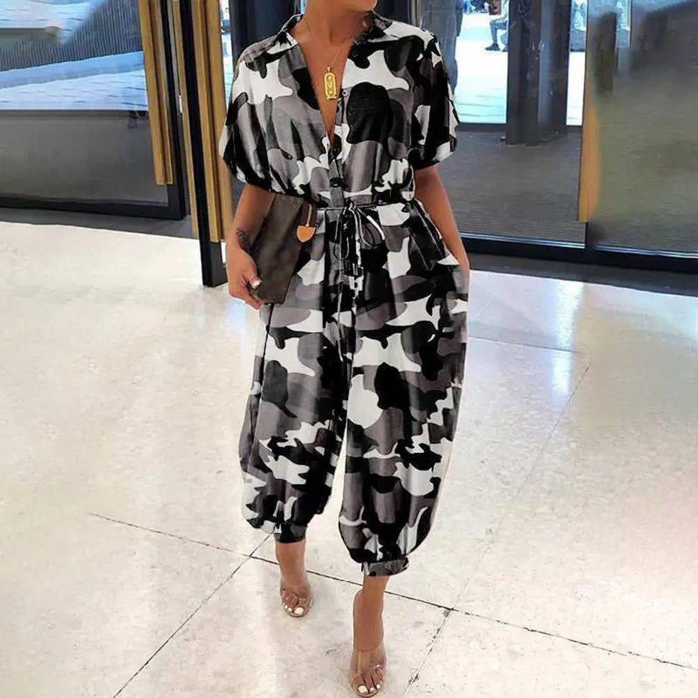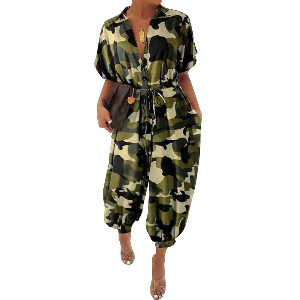 ठाठ और स्पोर्टी, छोटी आस्तीन के साथ इस महिला का एक टुकड़ा जम्पर सेट दोनों दुनिया के सबसे अच्छे हैं। यह एक वी-नेक और कैप्री की लंबाई को कमर के चारों ओर टाई के साथ आकार देने के लिए पेश करता है। जम्पर दो कैमो शैलियों में आता है।