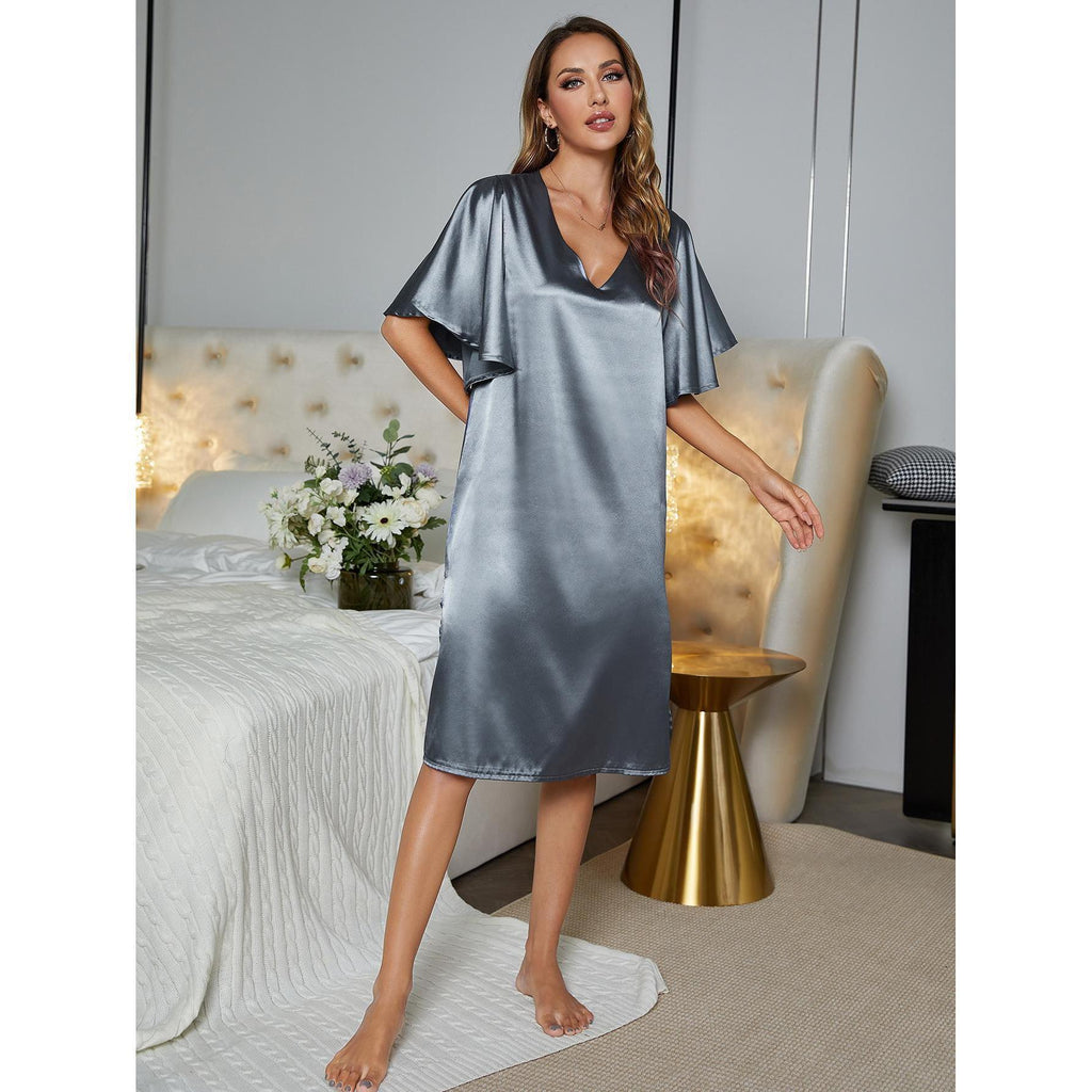 ढीली फिटिंग बेल स्लीव रेशमी नाइटगाउन