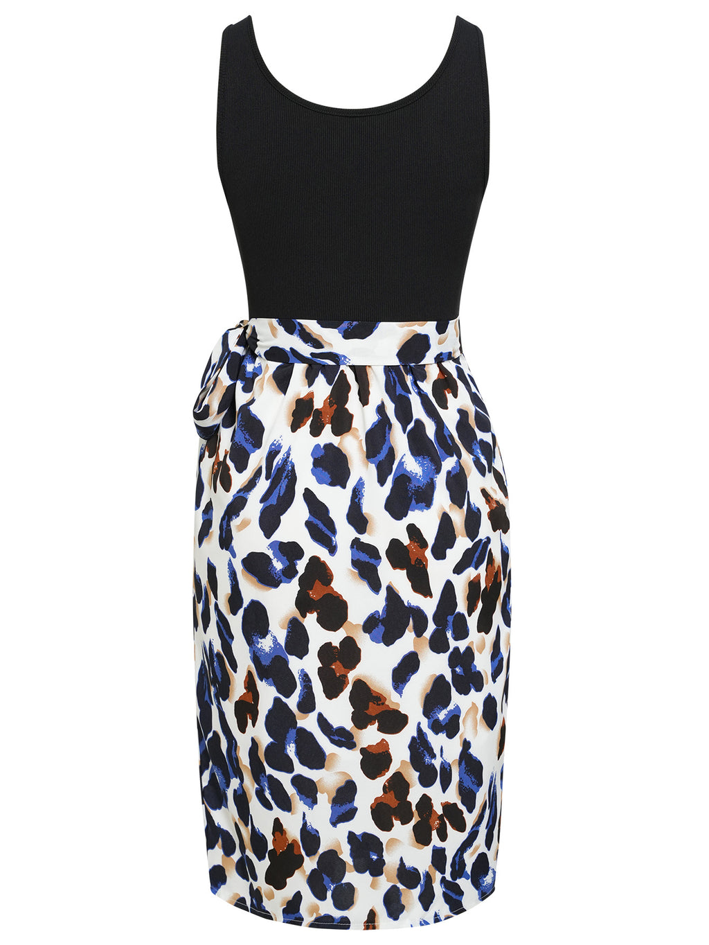 उच्च कमर वाले पशु प्रिंट स्कर्ट के साथ महिलाओं की टैंक पोशाक
