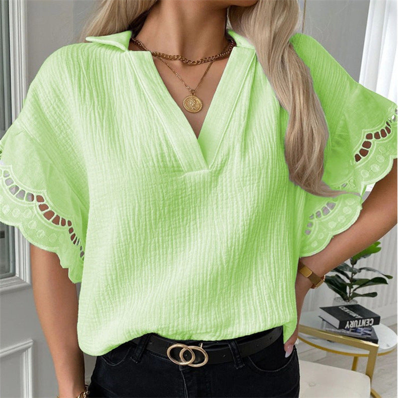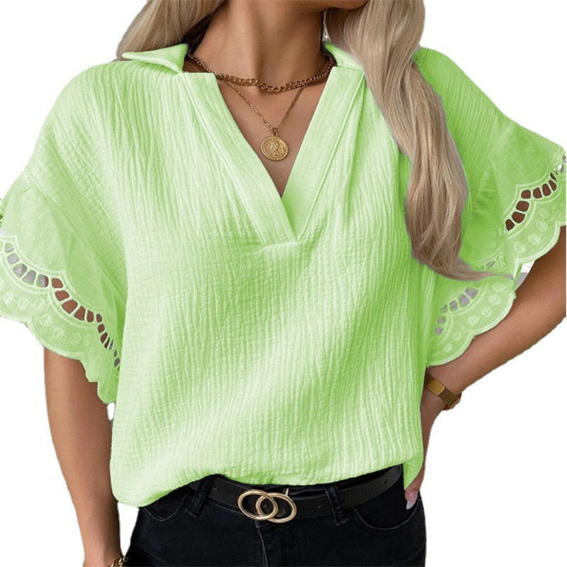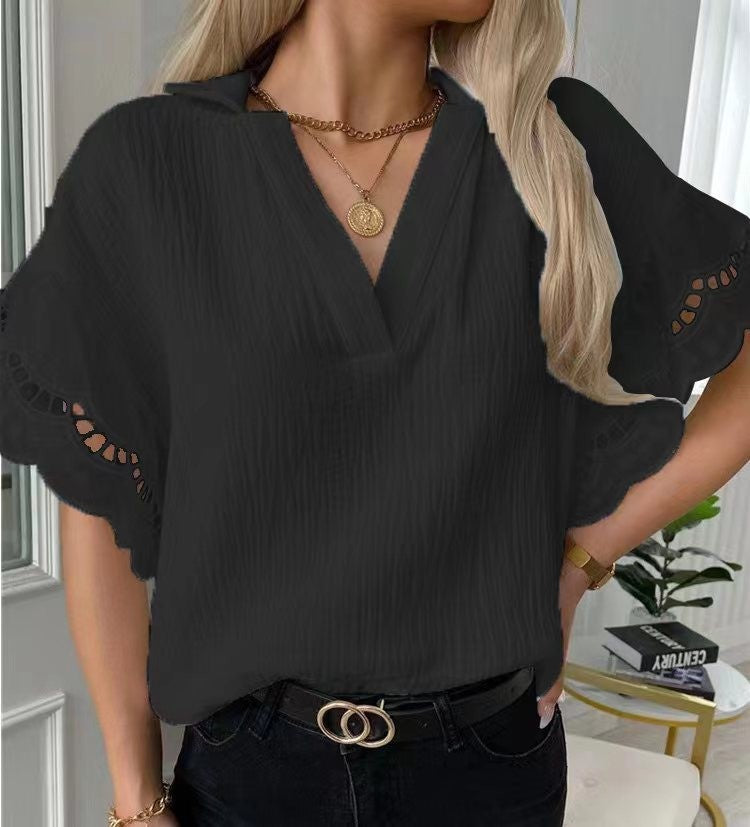वी-नेक बिलोवी लेस स्लीव्स कॉलर्ड ब्लाउज