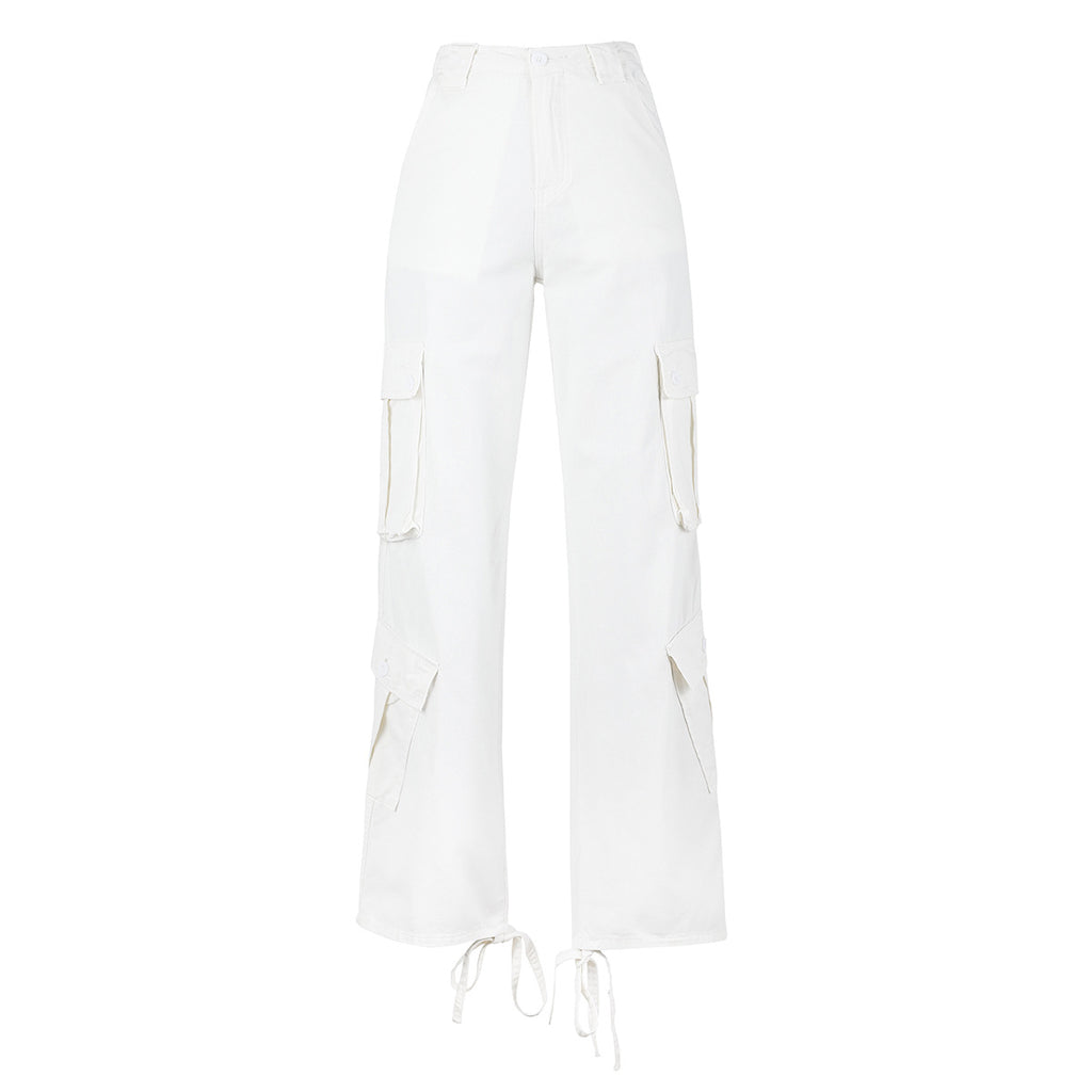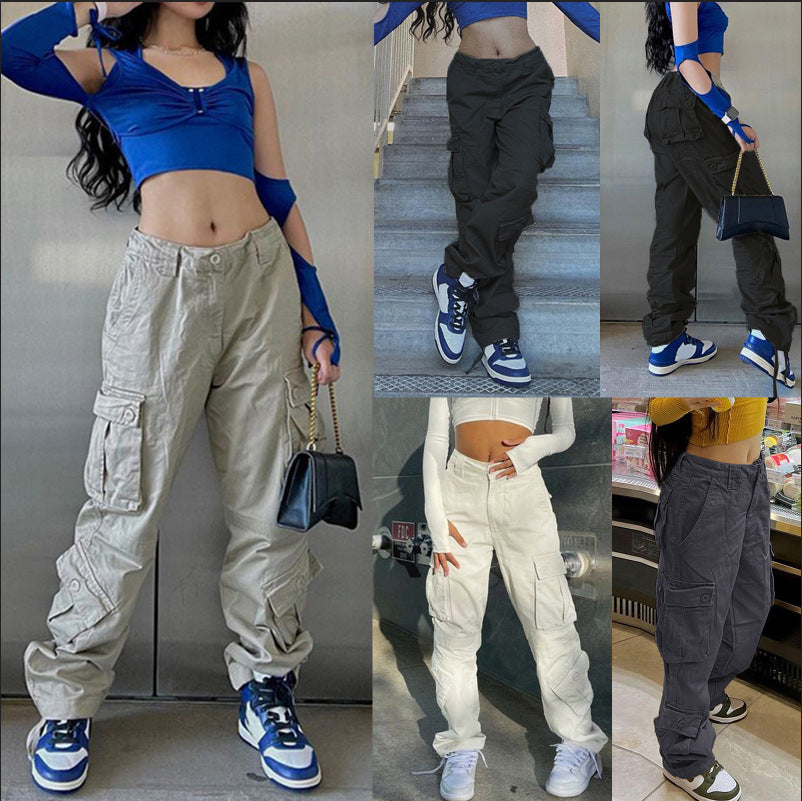 बड़ी जेब के साथ महिलाओं की लंबी कार्गो पैंट