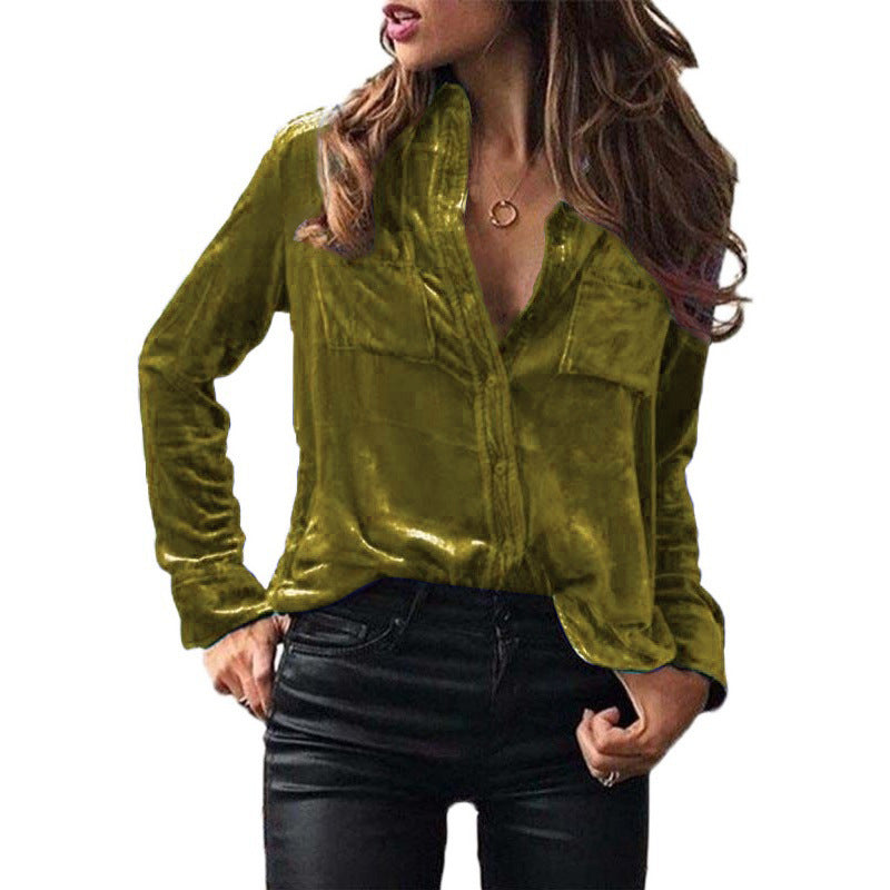 महिलाओं की मखमली लंबी आस्तीन बटन ऊपर ऊपर