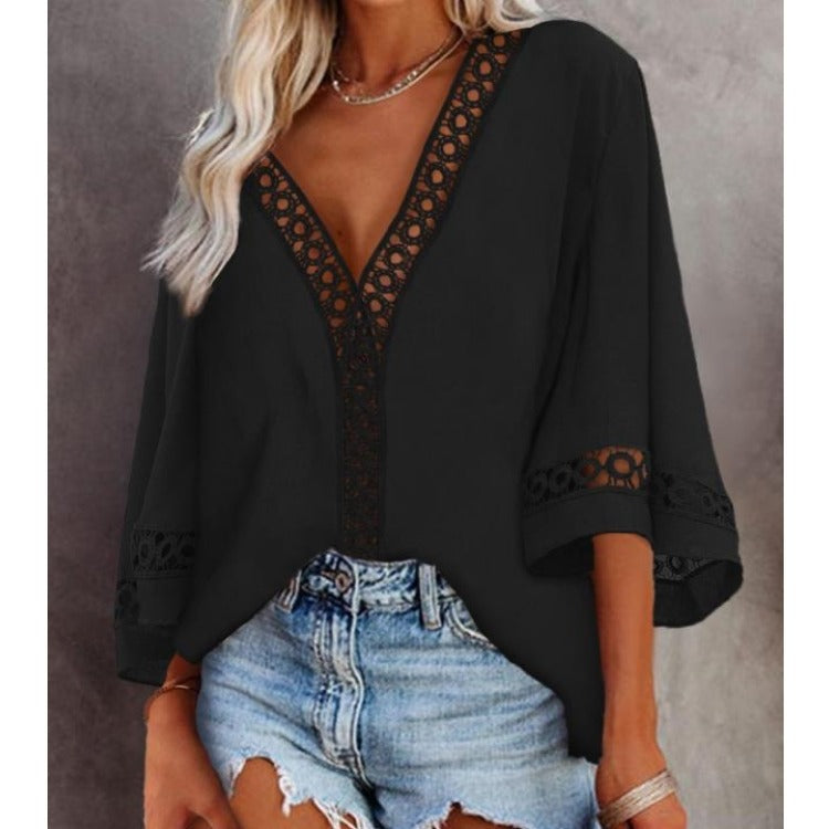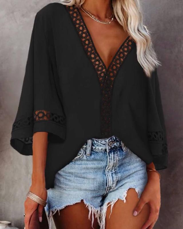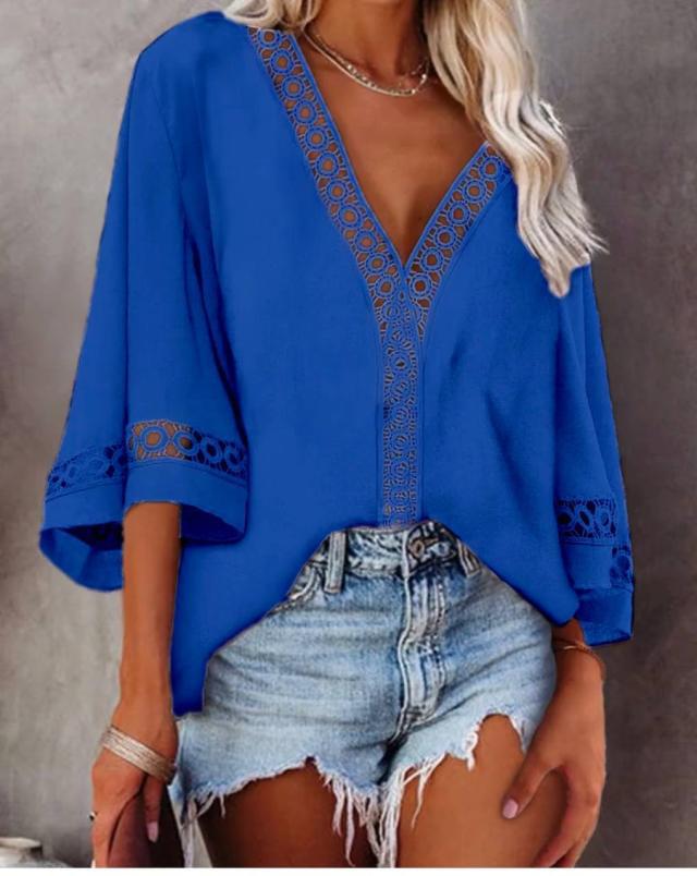 इस गर्मी में प्यारा महसूस करें महिलाओं के फीता डिजाइन ढीले फिटिंग लंबी आस्तीन बोहो ब्लाउज पहने हुए। इस बोहेमियन ठाठ ब्लाउज में गर्दन और शीर्ष के आस्तीन के साथ लैसी पुष्प विवरण हैं। यह कई रंग विकल्पों में आता है।