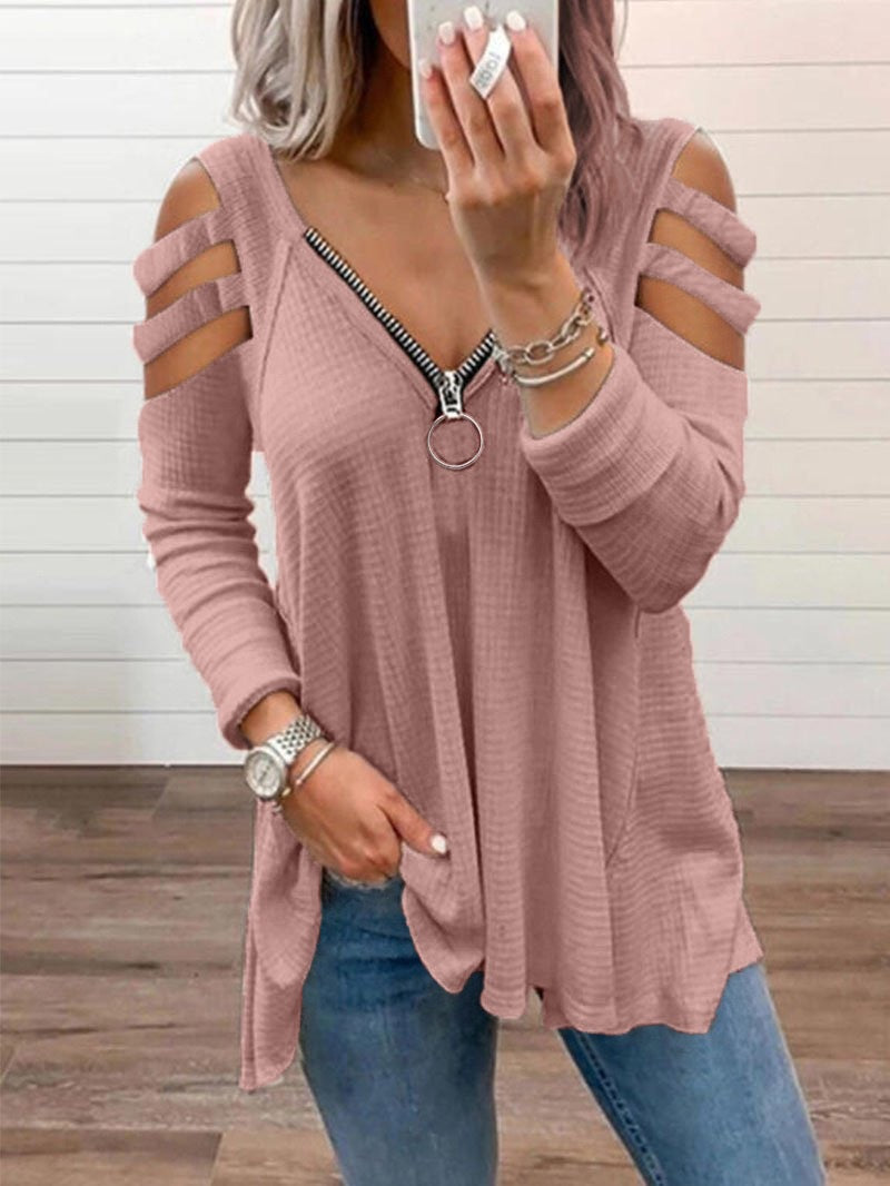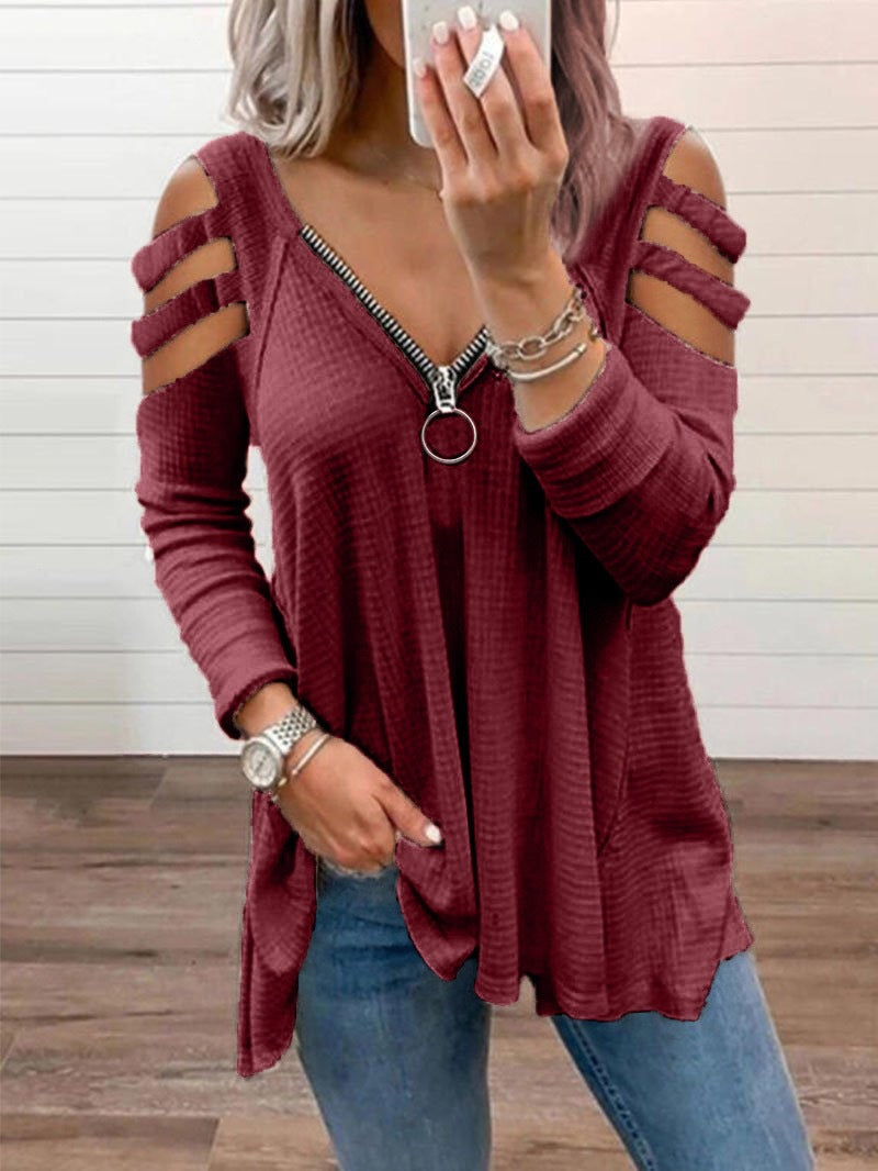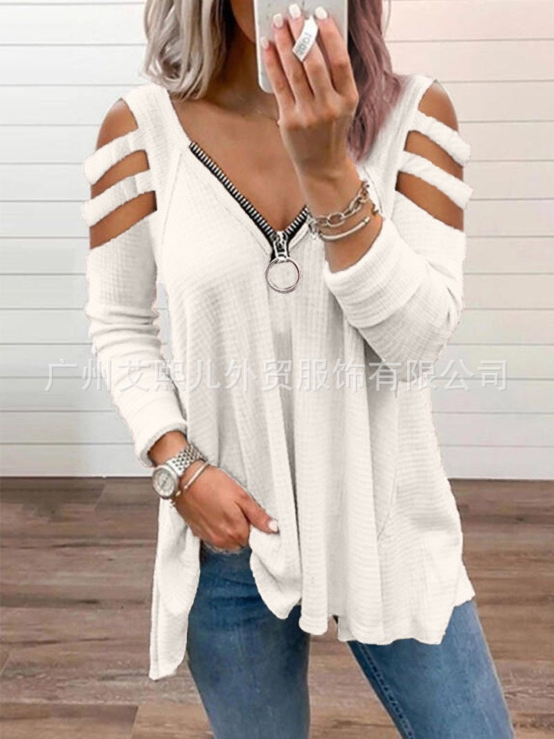 Bold dan dramatis, ritsleting bertali lengan panjang wanita ini pasti akan membuat Anda diperhatikan. Kemeja ini memiliki desain pas yang longgar dan ritsleting besar yang menarik.