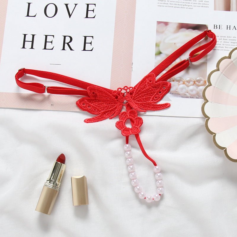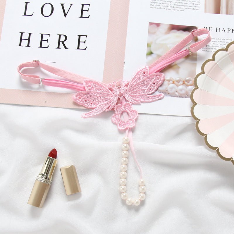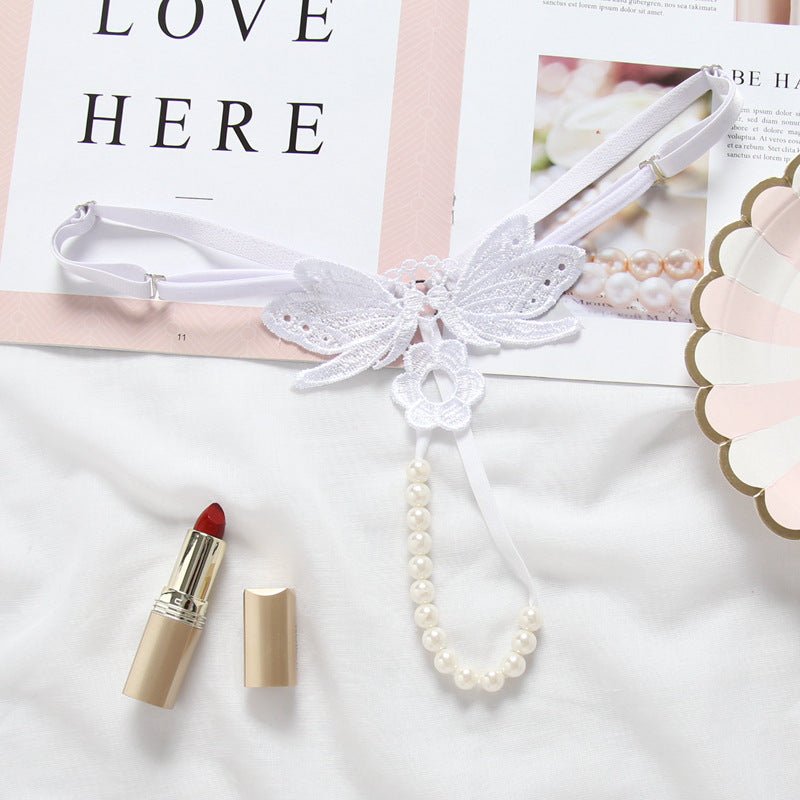 Una farfalla fluttuante fornisce un piccolo picco a ciò che sta aspettando sotto il filamento di perle di questa farfalla seducente Smooches Pocket G String.