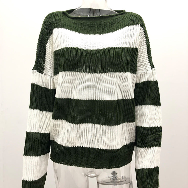 Sentiti carino e accogliente questo autunno indossando il maglione a strisce orizzontali leggero delle donne con collo sciatto. Questo maglione in stile maglia è disponibile in quattro diverse combinazioni di colori per adattarsi ai tuoi gusti.