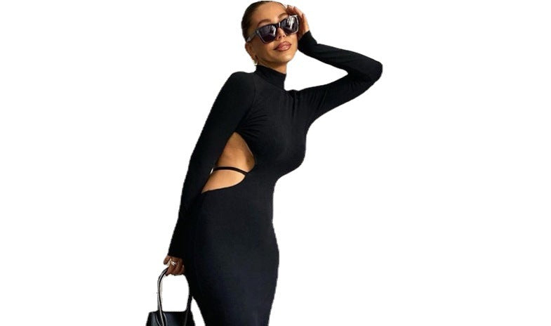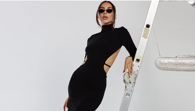 軽薄で魅力的なこの女性の切り抜きのミディドレスは、あなたに気づかれることは間違いありません。背面と側面に沿って切り抜きと、太ももを走るスリットが特徴です。