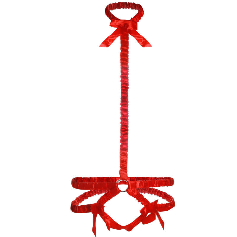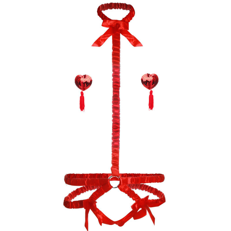 乳首タッセル付きサテンチョーカーベルト