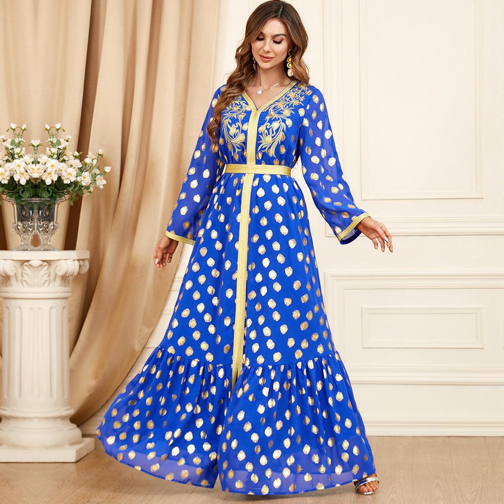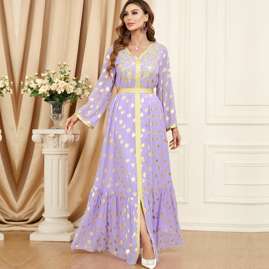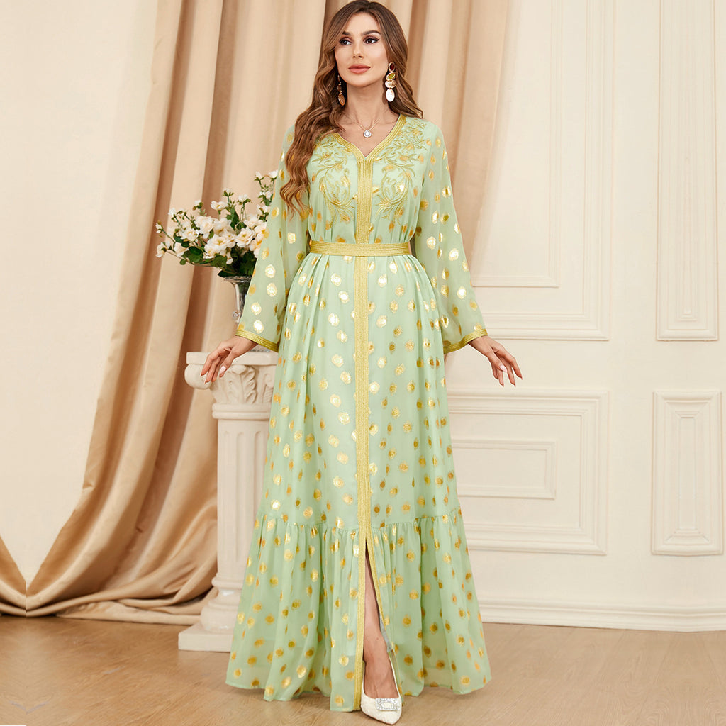 Women's Pastel Green and Gold Shimmery Polka Dot Maxi Dress