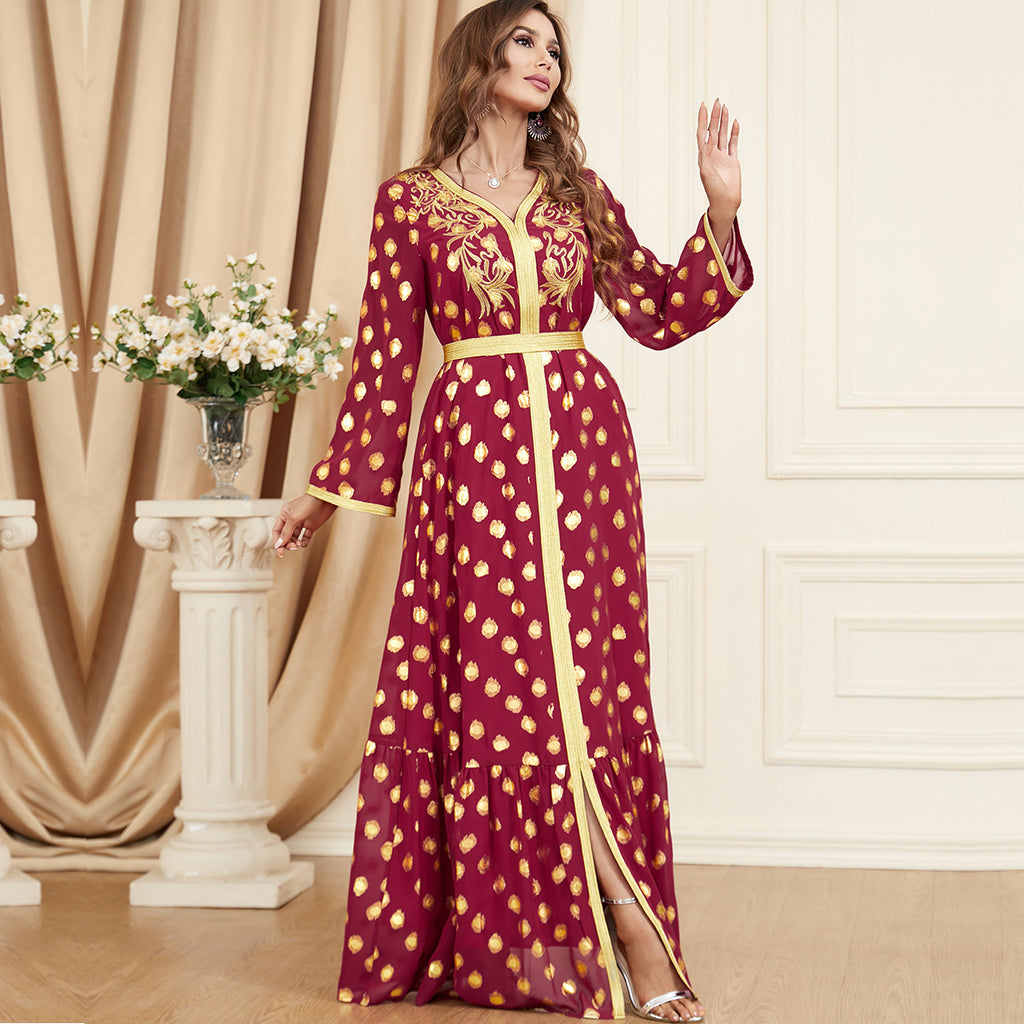 Sparkle and shine in any room you enter wearing the Women's Pastel Green and Gold Shimmery Polka Dot Maxi Dress featuring a small slit in the front.