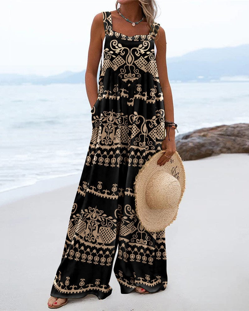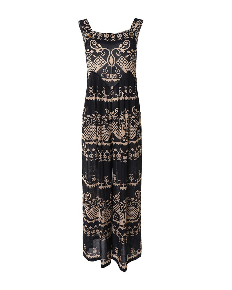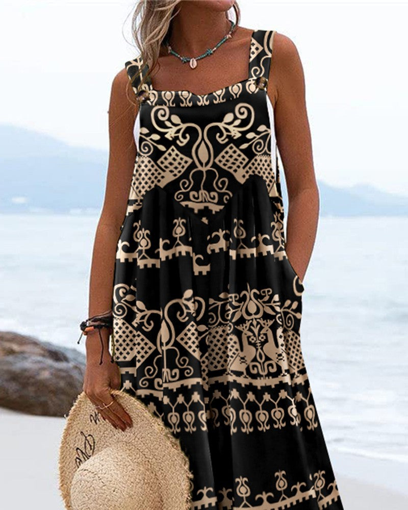 Semi -casual jurk met grote patroon met vierkante halslijn