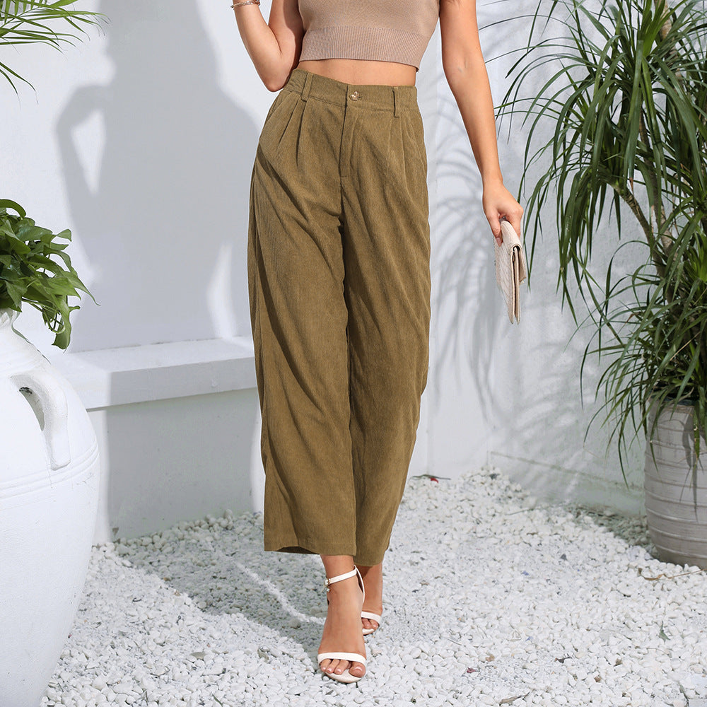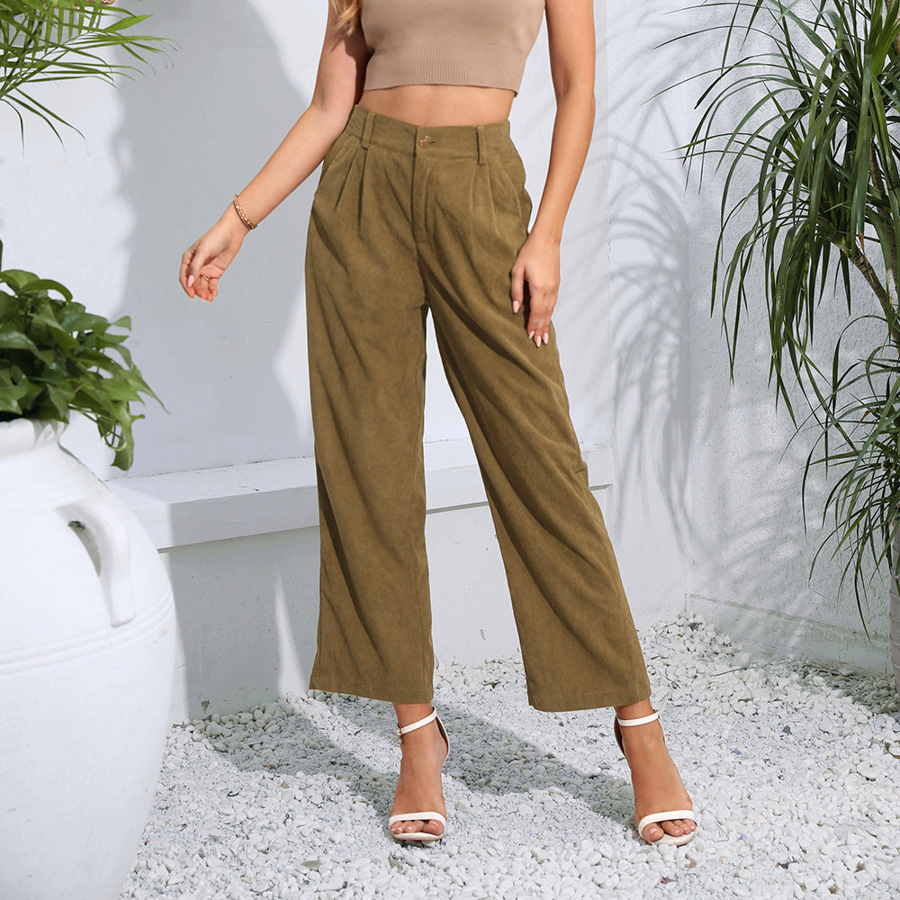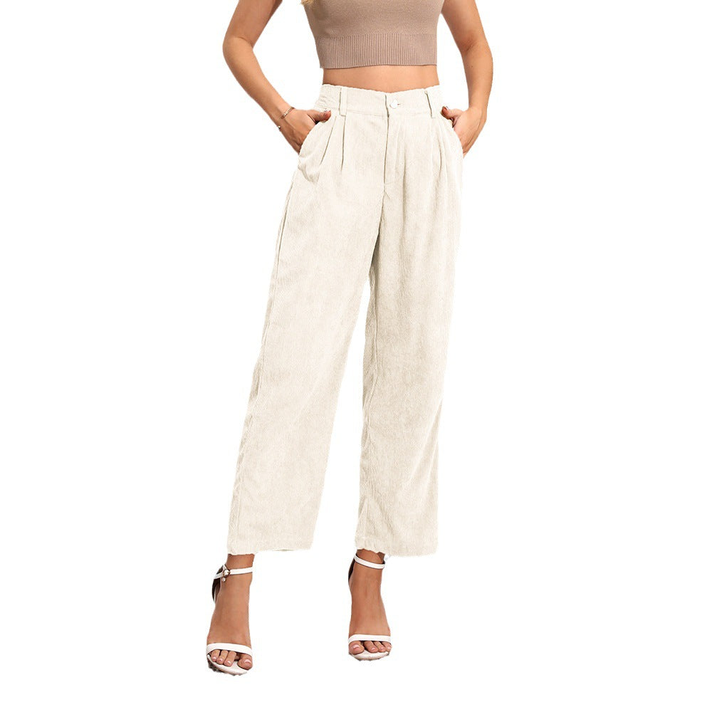 Perfect als een nietje in uw zakelijke casual kast, werkt de high -taille highle -lengte broek voor dames met zakken goed met blouses en hakken van welke aard dan ook. Het komt in neutrale crèmekleurige tinten.