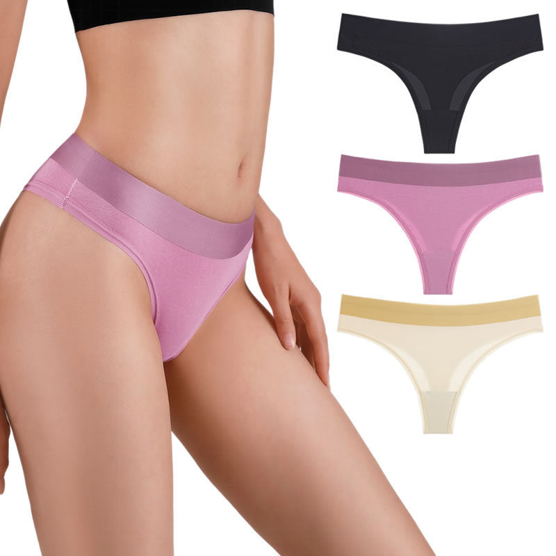 Geniet van een schattig, comfortabel paar dagelijks ondergoed wanneer je de lage taille naadloze dames string draagt ​​met band met tustbaar, silkateriaal, verkrijgbaar in uw keuze van patronen.