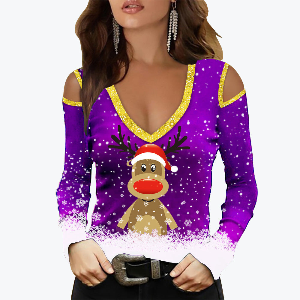 Celebrate the holidays in quirky style this year with the Festive Christmas Reindeer Cold Shoulder Sweater. Featuring a low V-neck, cutouts along the shoulders and a reindeer graphic, this top truly is one of a kind.