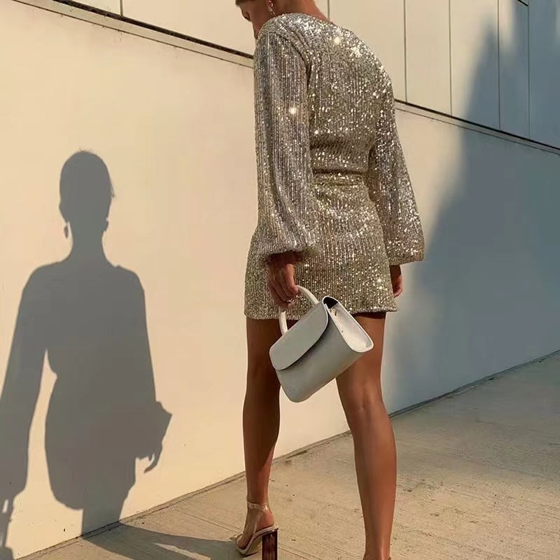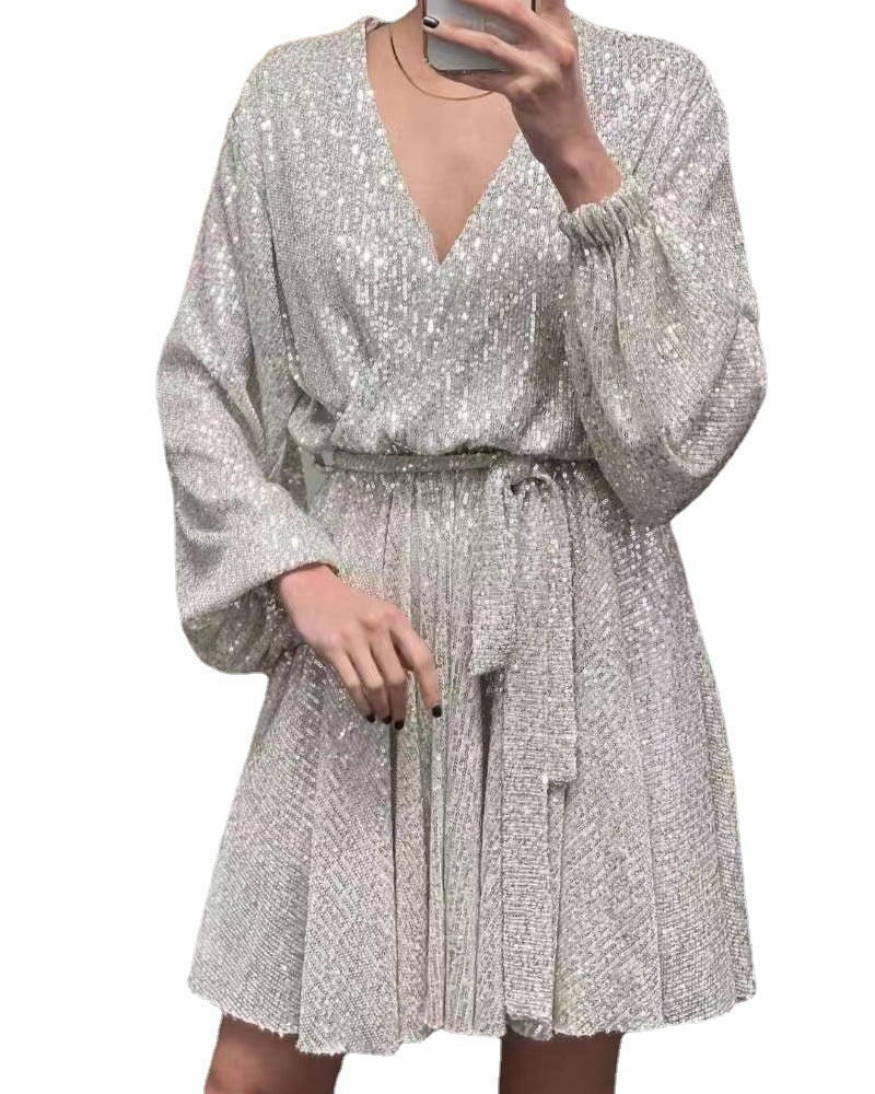Put a flirty touch on your nighttime attire wearing the Women's Long Sleeved V-neck Midi Length Wrap Dress. This short dress features flowing fabric that secures around the body using the belt in the middle.