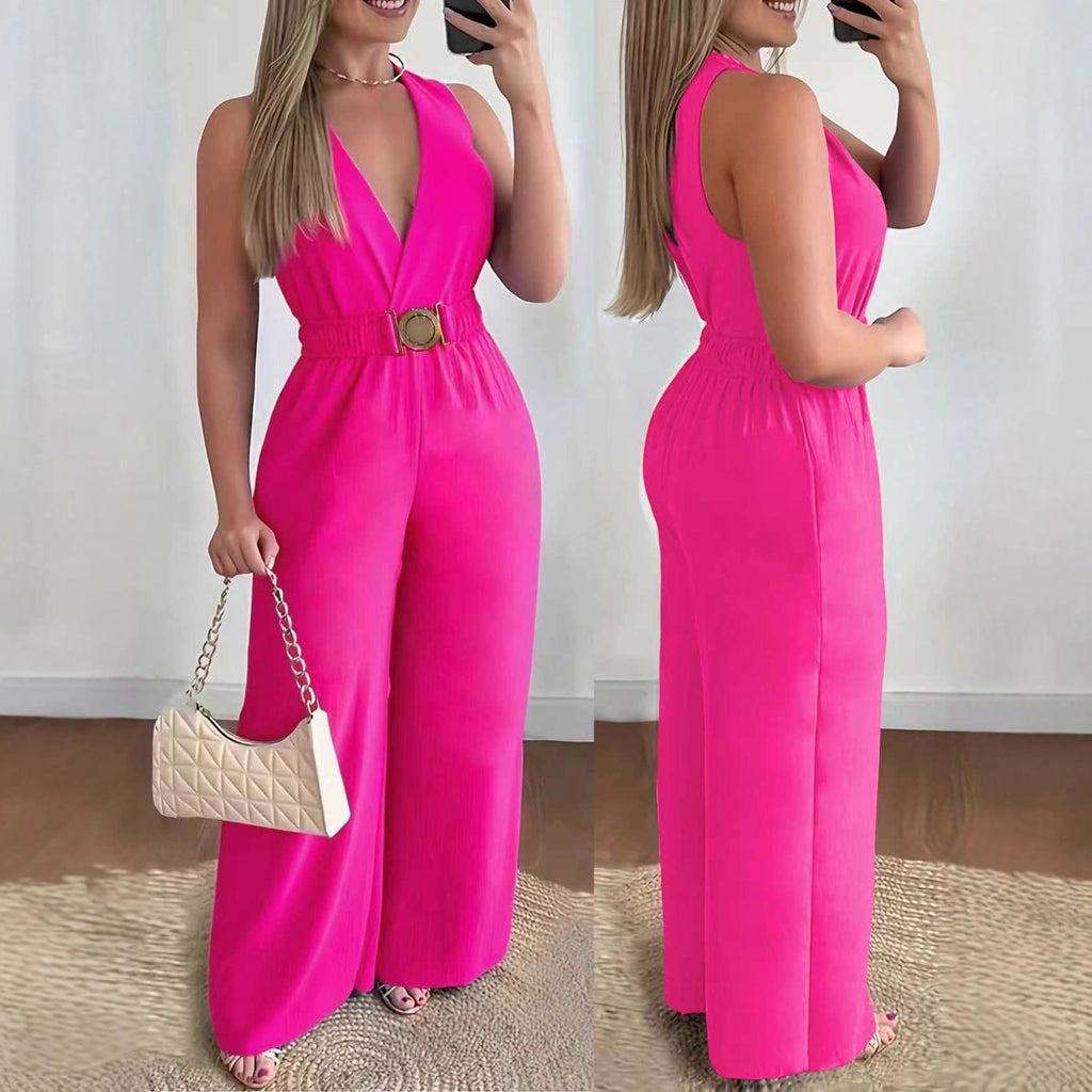 Slant Pockets Solid Color Sexy Loose Elastic-Waist Wide-Leg Pants
