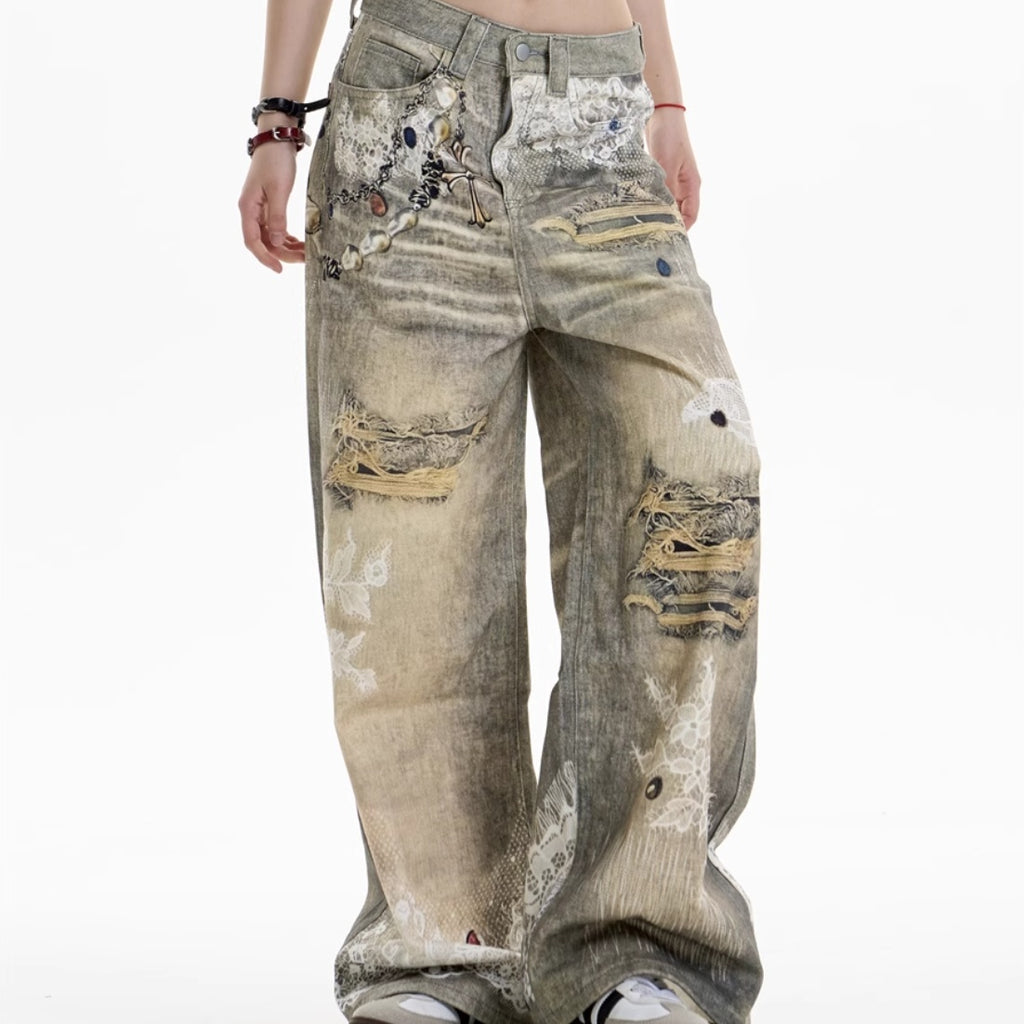 Statement Cross-Print Wide-Leg Jeans with Graphic Appeal