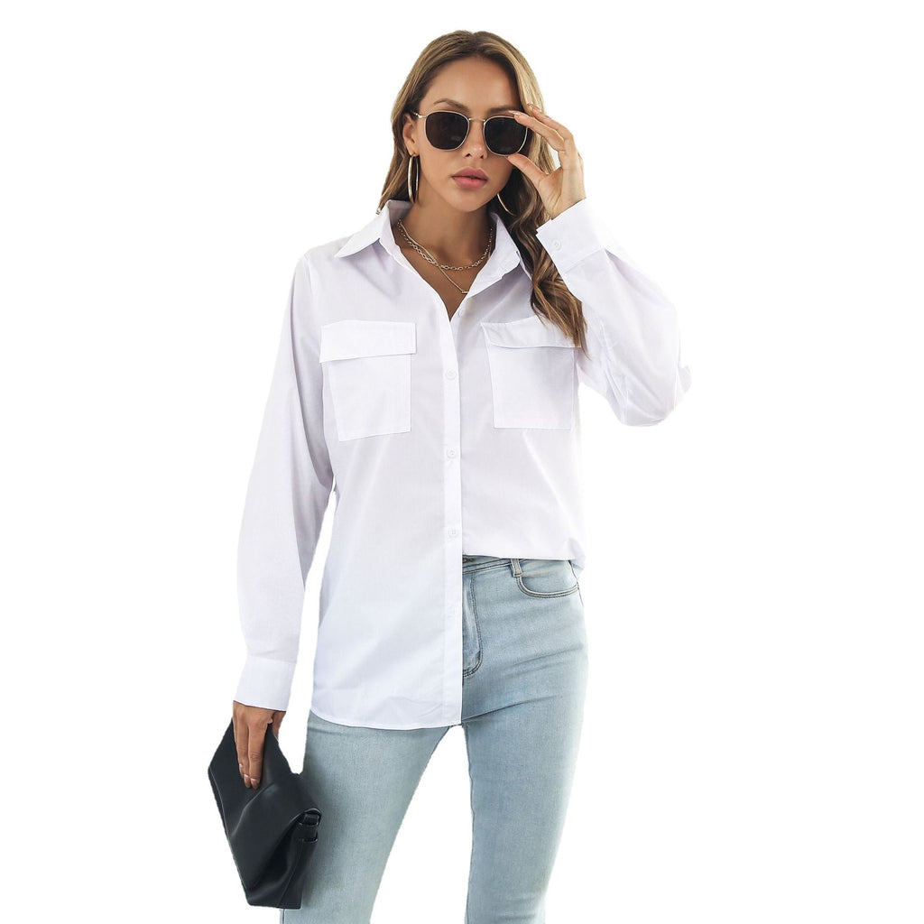 Mantenha seu estilo diário de baixa chave e deitado com o botão assimétrico de colar de gole das mulheres com bolsos de mama. Se destaca com seu lado longo e um curto que lhe confere uma aparência de vanguarda.