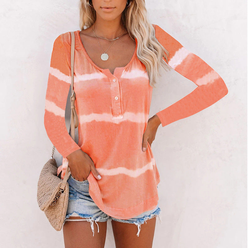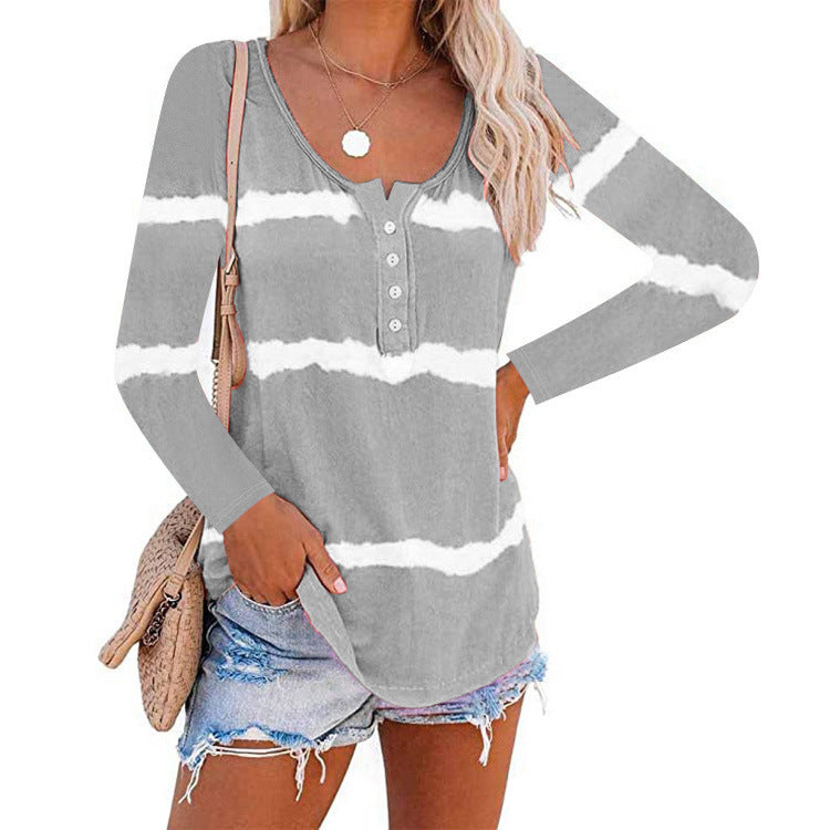 Listras horizontais largas cortadas através do tecido de cor sólida da camiseta de botão de manga longa listrada. É formado por material premium que é suave ao toque e notavelmente leve.
