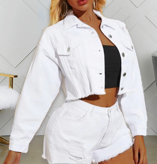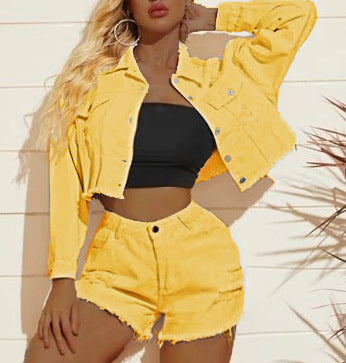 Jaqueta de jeans e shorts de duas peças femininos