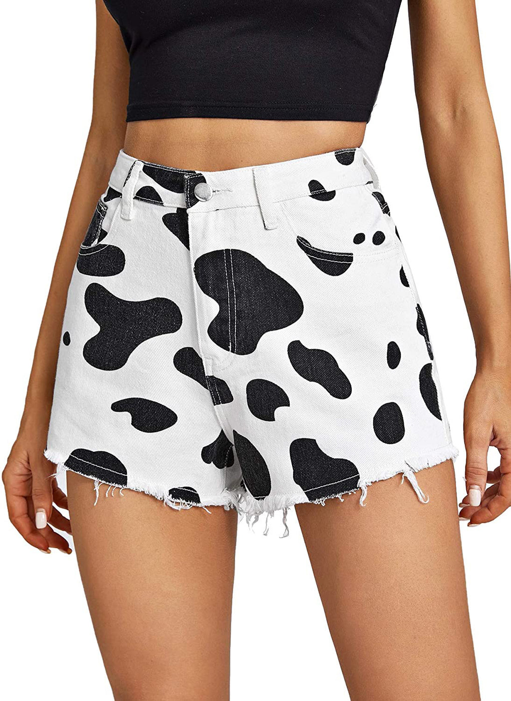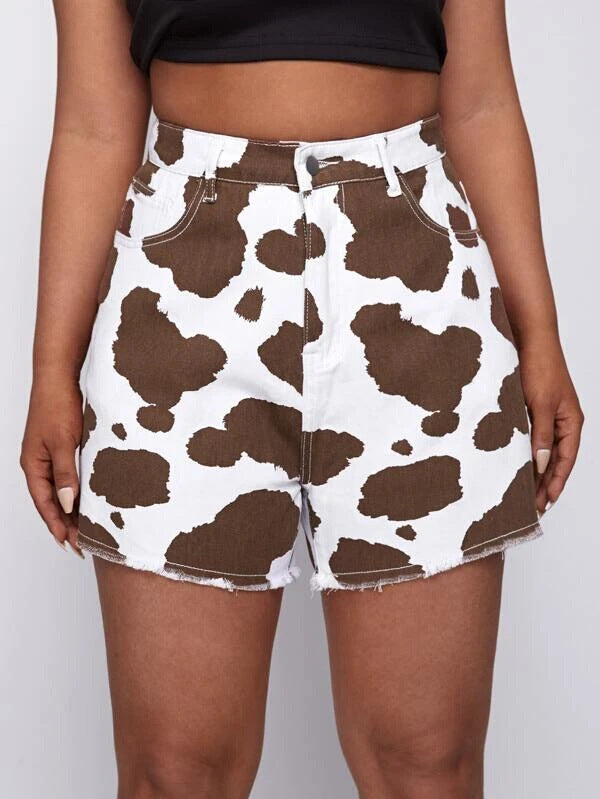 Pesquinhado e fofo, os shorts altos da cintura feminina com designs de impressão de vaca adicionam capricho a qualquer conjunto. Os shorts vêm em sua escolha de preto preto e branco ou marrom e branco.