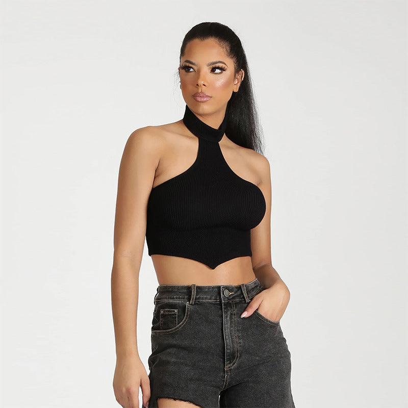 Top da bainha triangular do pescoço feminino
