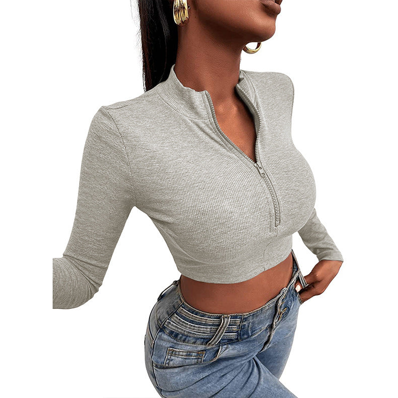 Top de colheita com zíper com mangas compridas