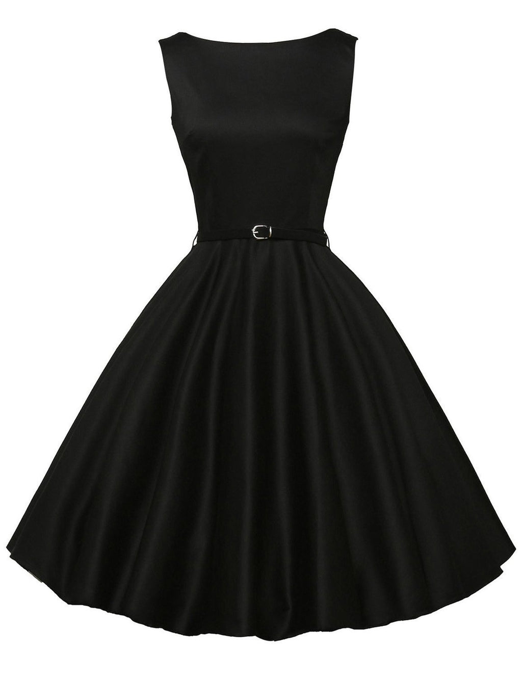 Pronto para caber no seu guarda-roupa de Rockabilly, o vestido de cocktail de persuasão de prega cardia é um vestido de cor sólida com uma cintura com cinto e uma saia larga.