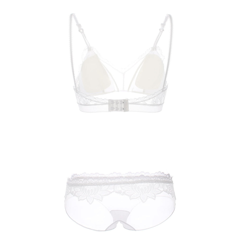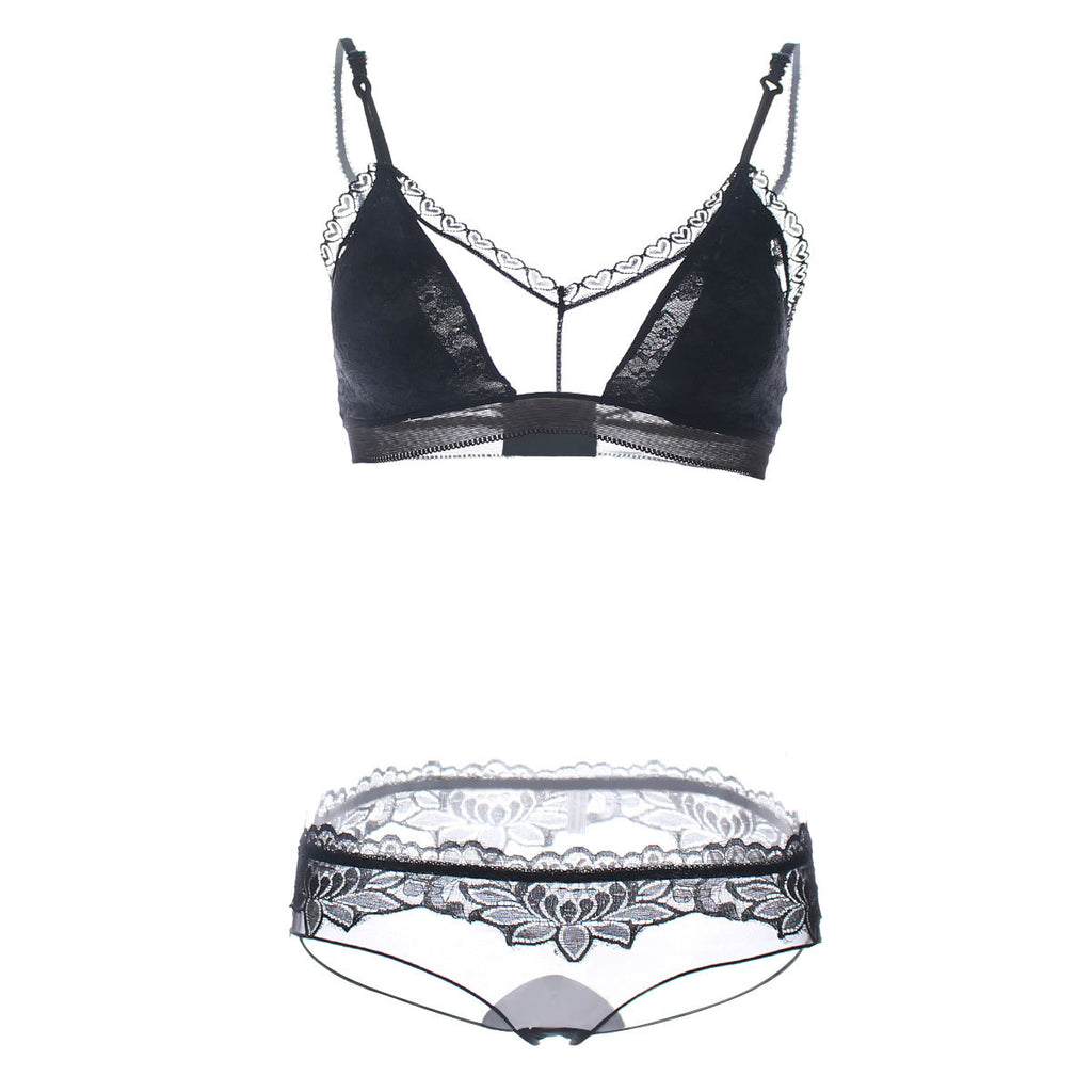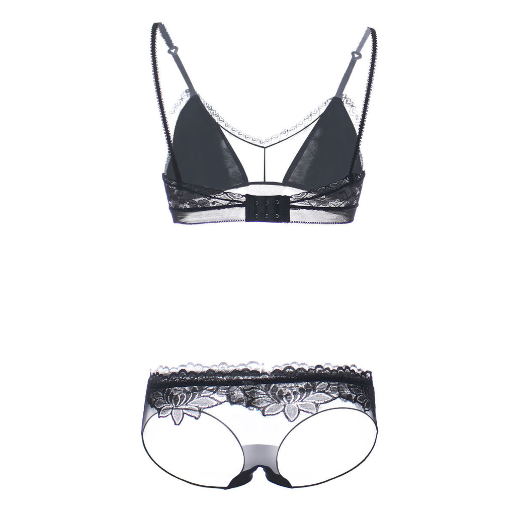 在經典,美麗的蕾絲T帶胸罩和Hiphugger套裝中,幾乎沒有想像力,並配有半光澤胸罩和半透明的內褲。